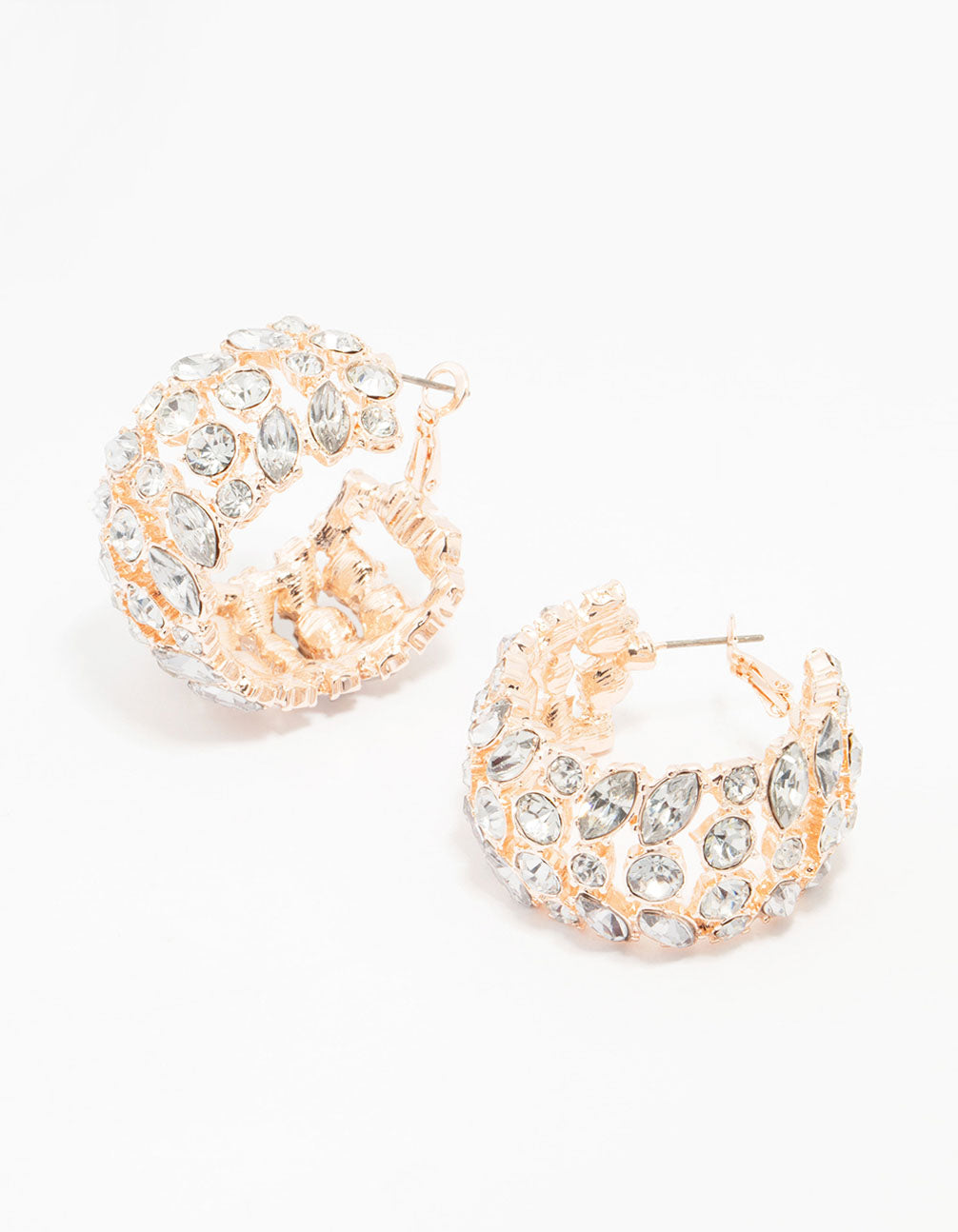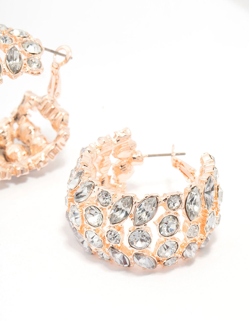 Rose Gold Wide Diamante Hoop Earrings
