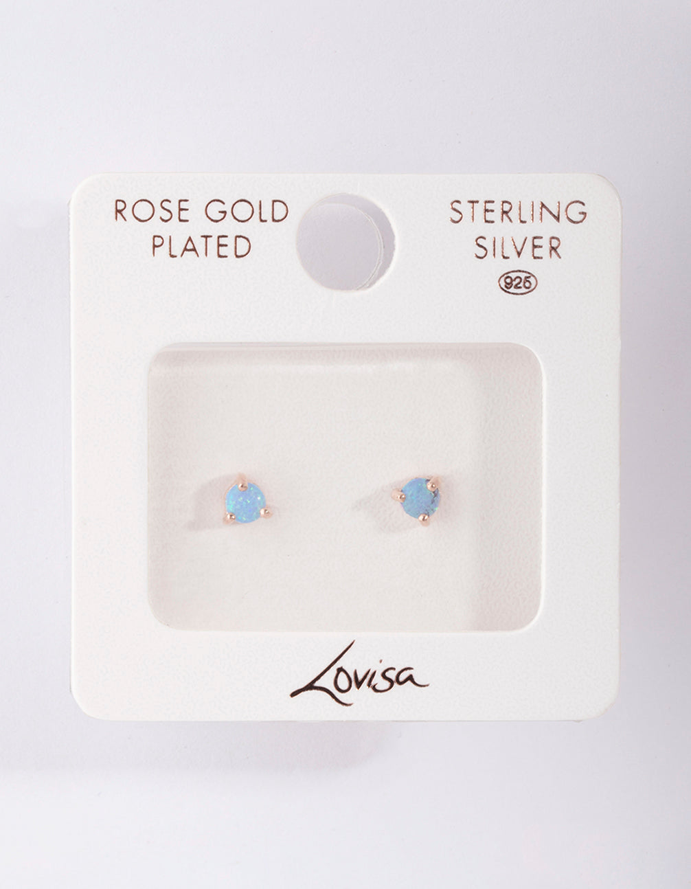 Rose Gold Plated Sterling Silver 3 Claw Opal Stud Earrings