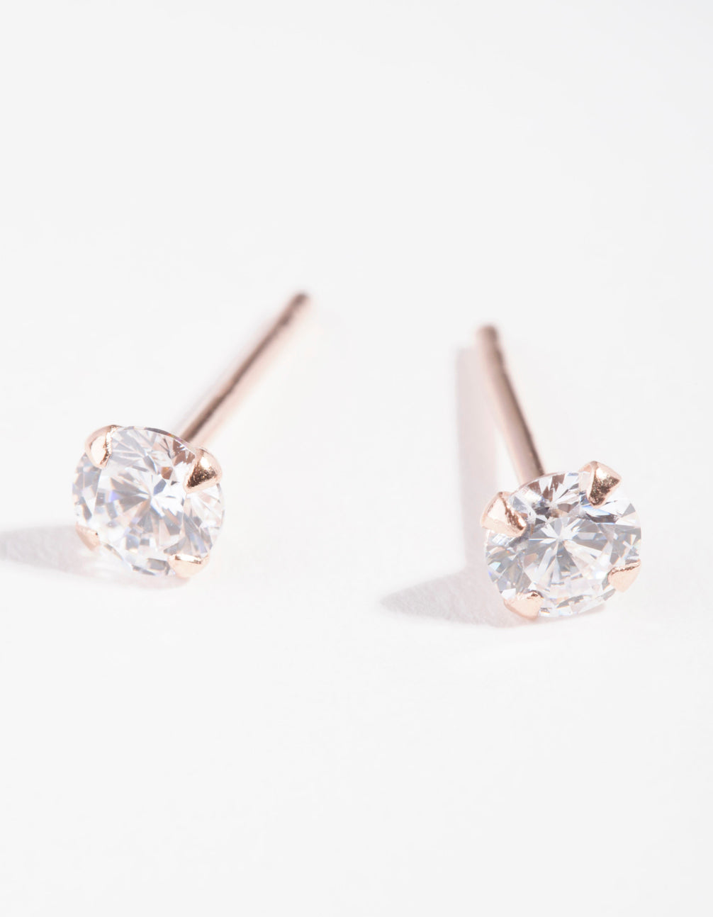Rose Gold Plated Sterling Silver Cubic Zirconia 1/4 Carat Stud Earrings