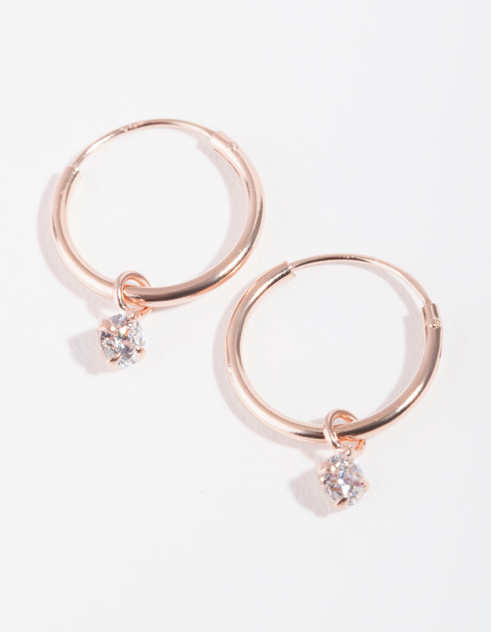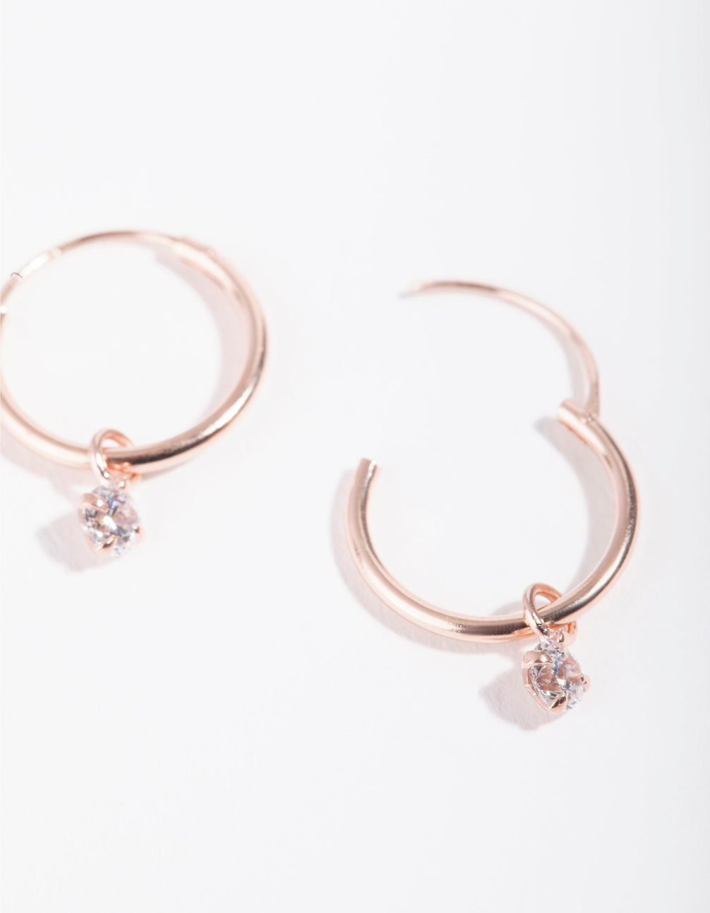 It's always worth investing in quality pieces made with rose gold-plated sterling silver. These dainty hoops feature a lovely diamante charm. Pretty and dainty, incorporate them into your daily outfit rotation for a chic finish to any outfit.