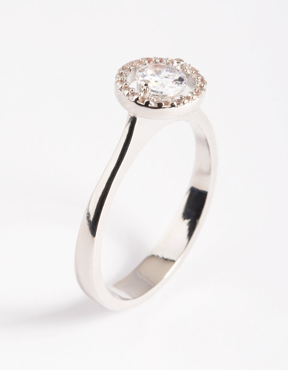 Silver Cubic Zirconia Centre Stone with Halo Ring