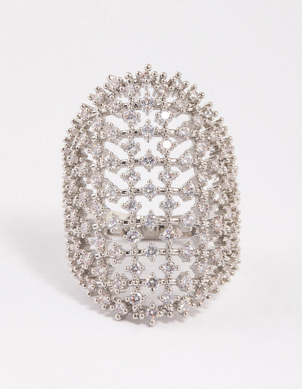 Pair this Silver Cubic Zirconia Shield Ring with matching accessories from our Cubic Zirconia Collection for the ultimate evening look.