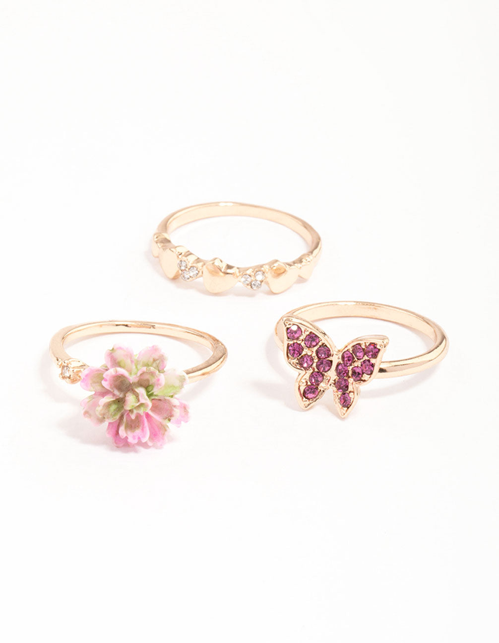 Gold Flower Butterfly Ring Pack Gold Flower Butterfly Ring Pack Gold Flower Butterfly Ring Pack