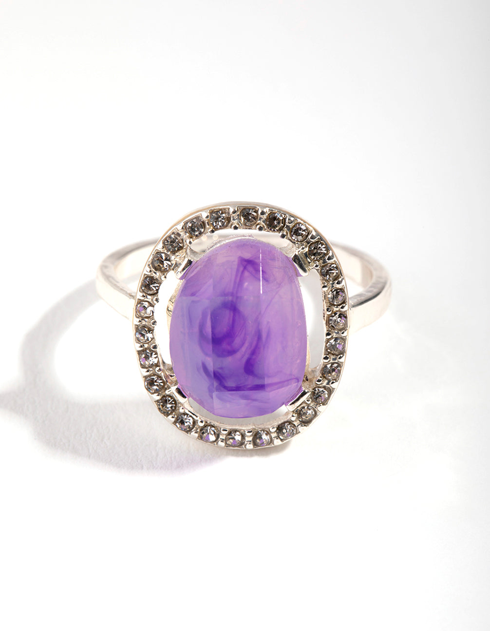 This is the finishing touch you've been searching for! This silver-toned ring boasts a purple stone centre and is lined with graceful diamantes. The perfect accessory for your next night out.