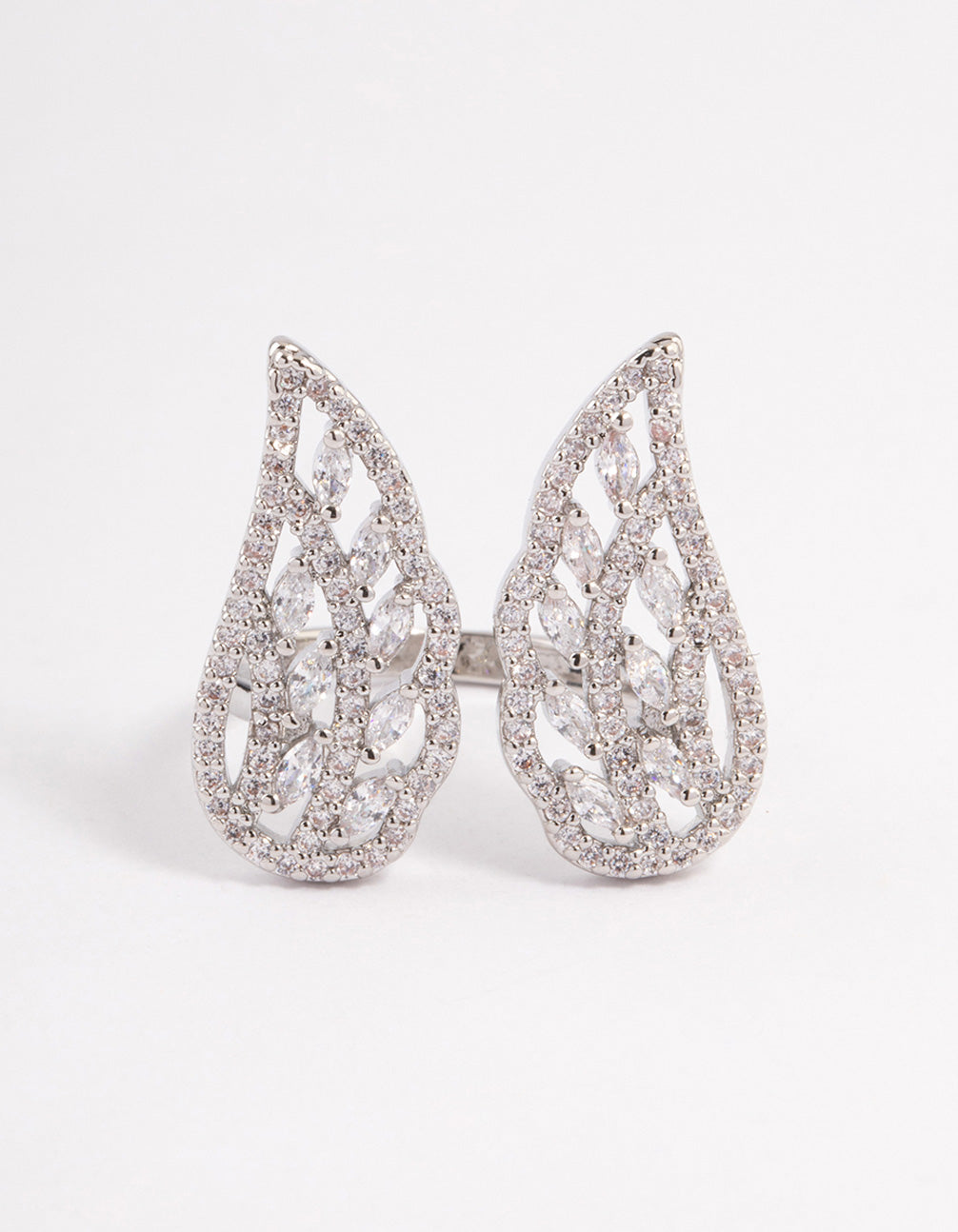 Protect your energy with this angelic, cubic zirconia ring! This statement piece is designed with two angel wings and a silver setting for added shine.