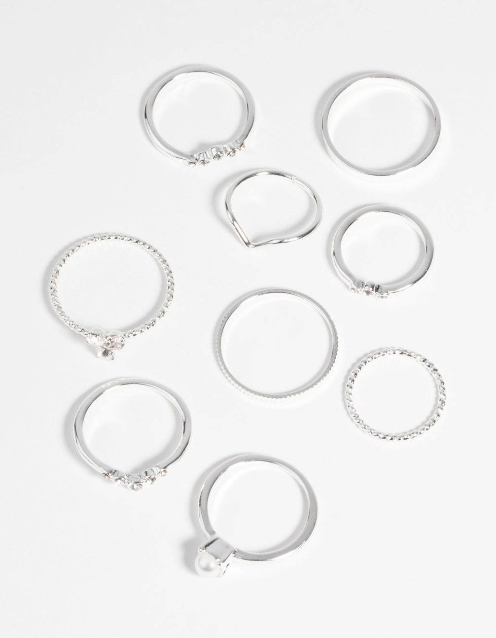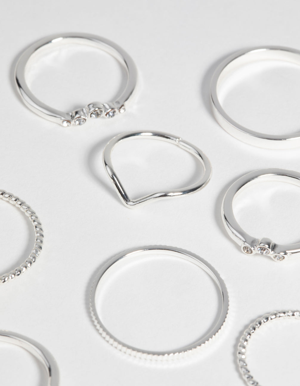 Ring it on! Our lovely rings are designed to be layered together for maximum impact. This pack features a variety of designs that are sure to impress. Mix them, match them, stack them!
