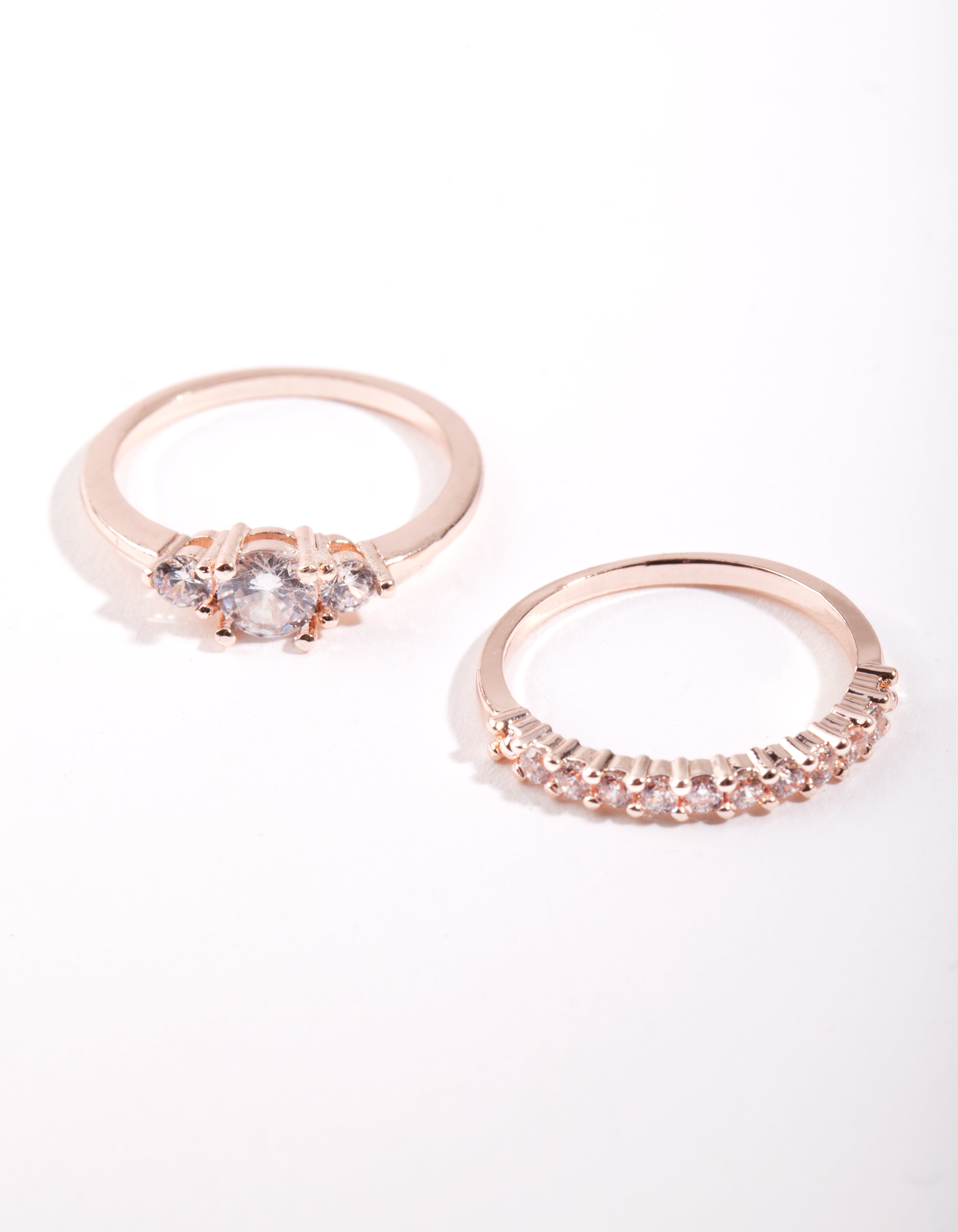 A fashion ring makes the ultimate finishing touch to your daily looks. Stack them up and make an impact, or wear alone for a more refined look. This ring features a rose-gold-toned setting with cubic zirconia stone embellishments.