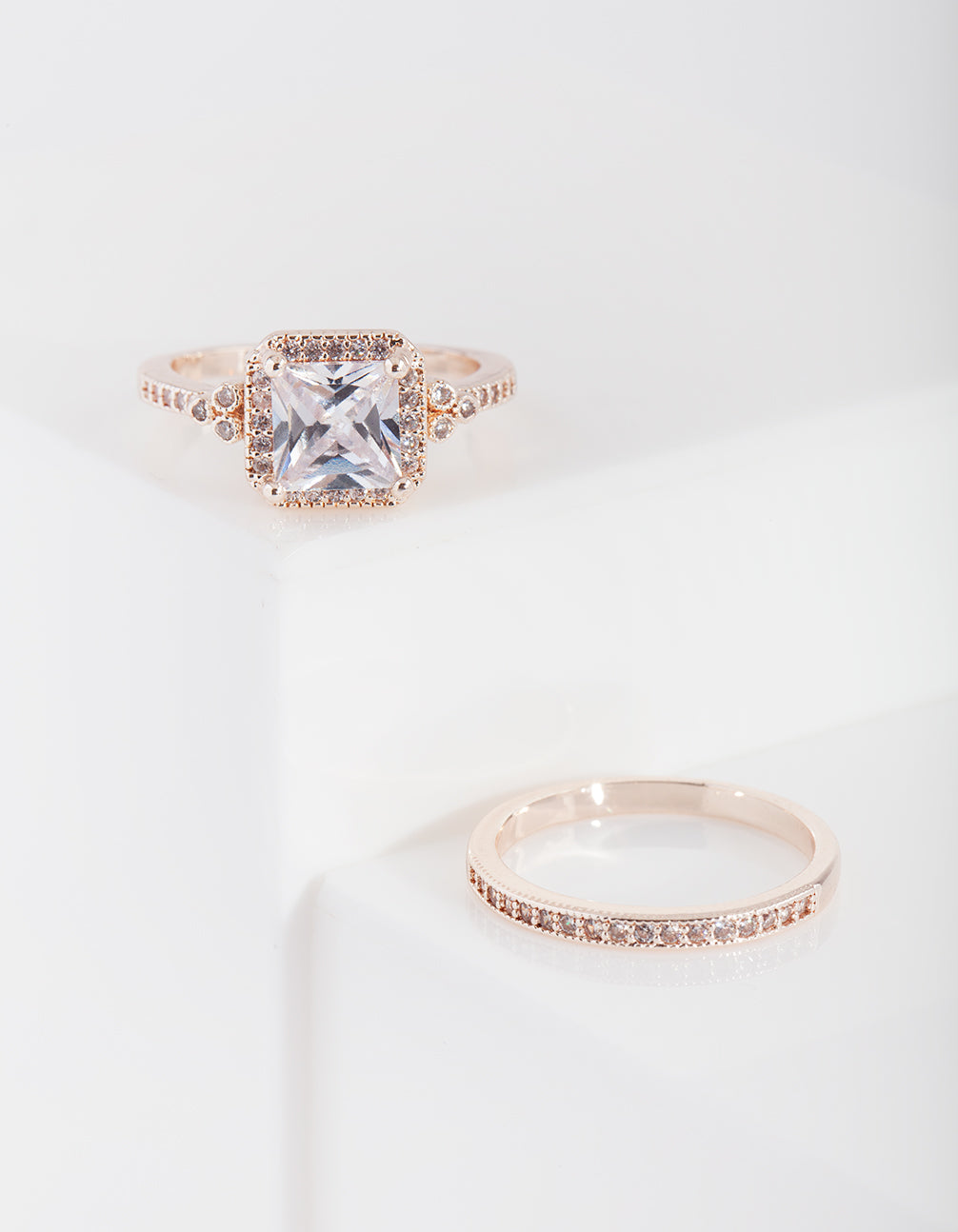 Make a statement in a stunning fashion ring. Stack with other styles for extra impact or wear alone for a refined addition to your ensemble. This ring features a rose-gold-toned setting with an engagement stack design.
