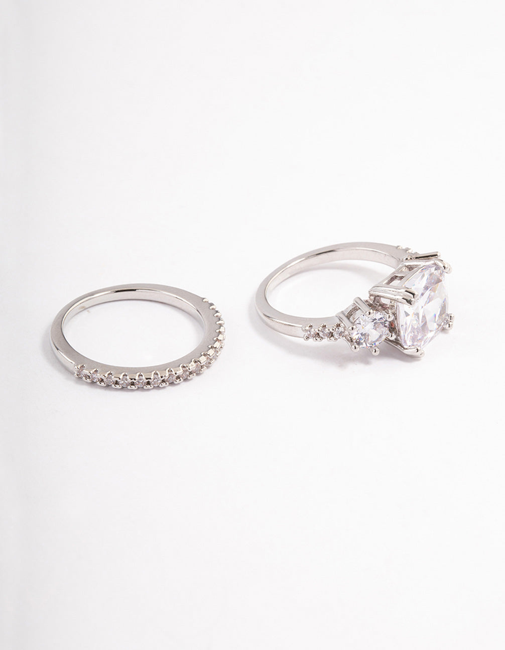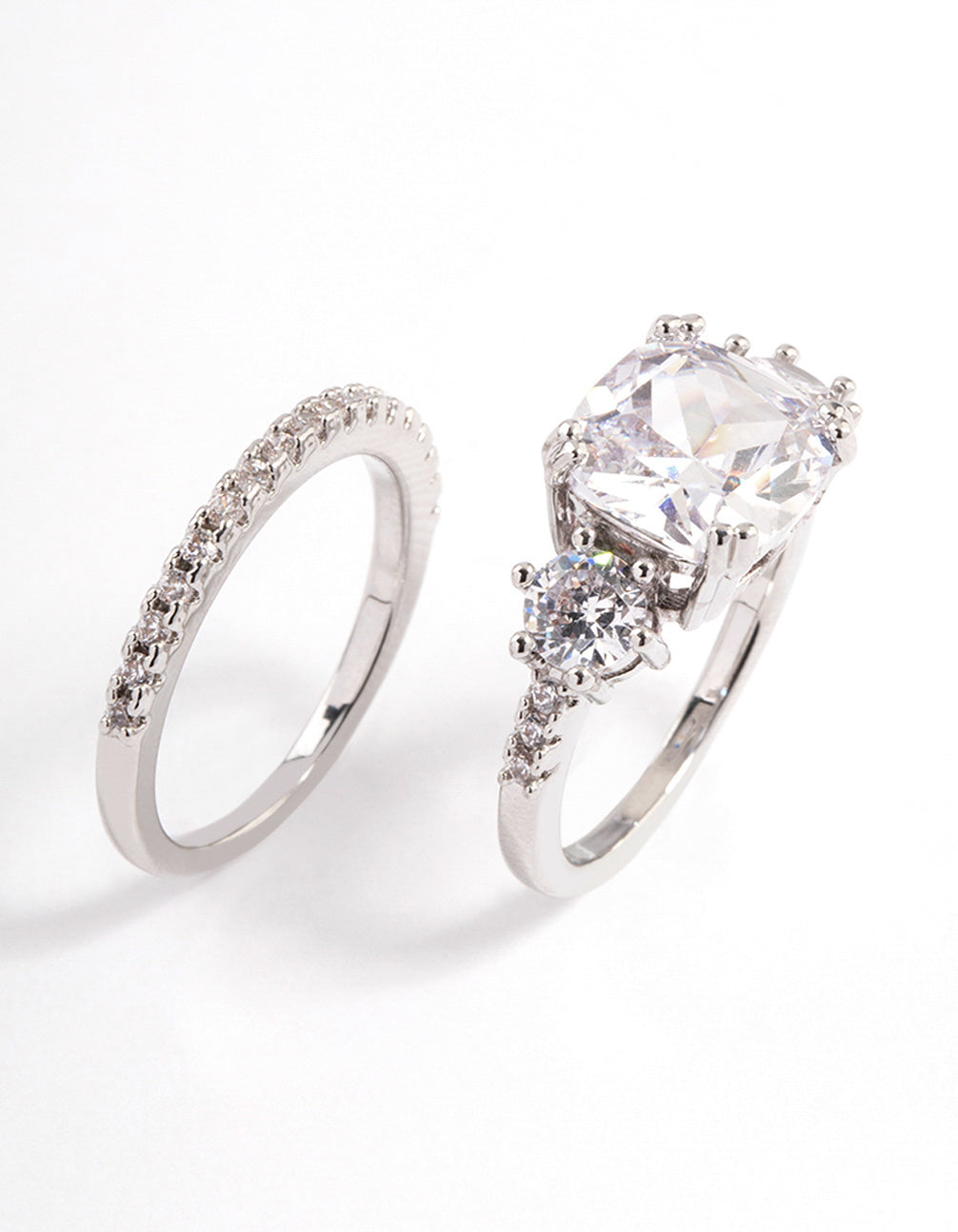 This stunning cocktail ring set features rings with a silver-toned setting and triple stones, perfect for adding a touch of glamour to your look.
