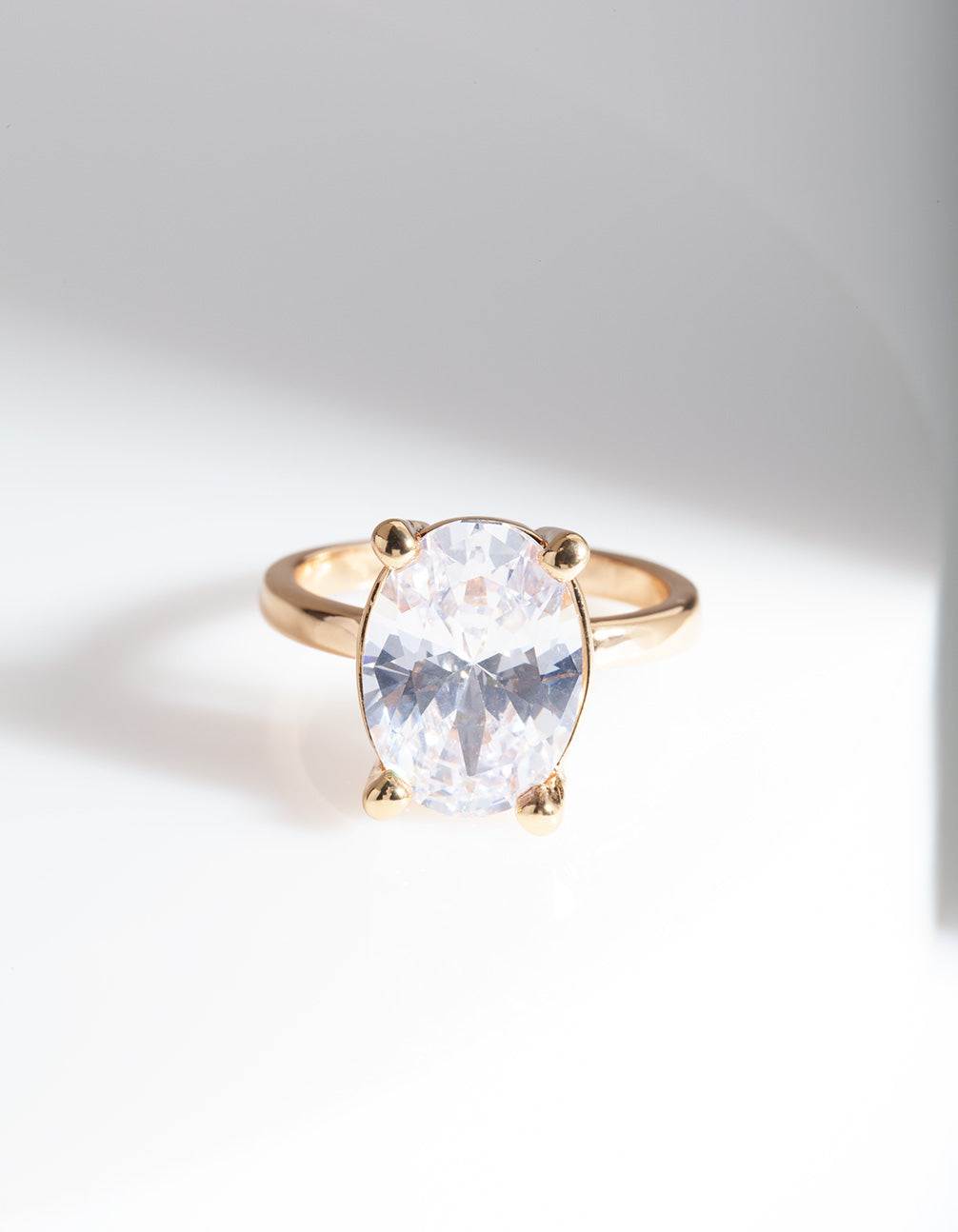 Make a statement in a stunning fashion ring. Stack with other styles for extra impact or wear alone for a refined addition to your ensemble. This ring is a Cubic Zirconia engagement style in a gold tone.