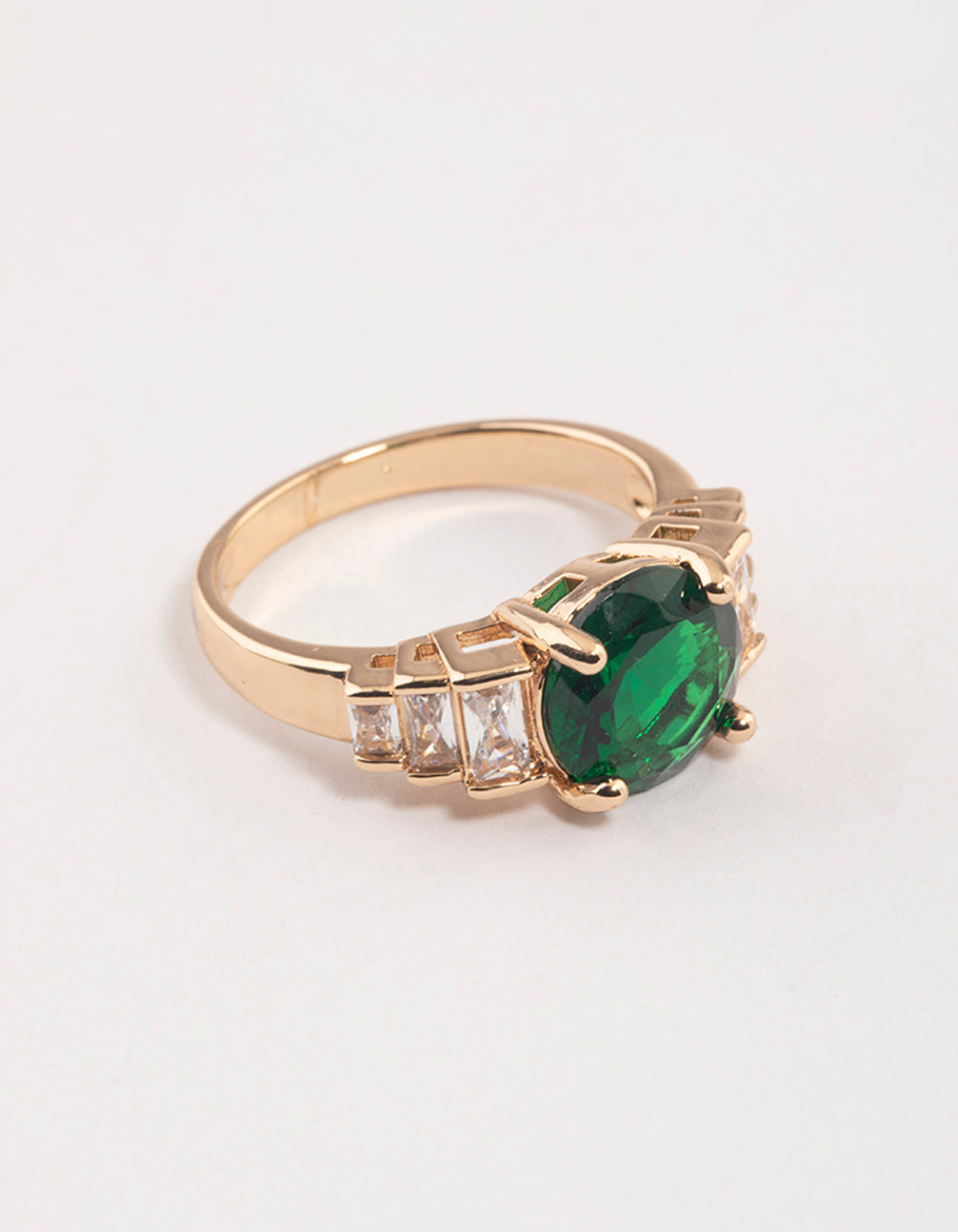 Complete your outfit with this modern, gold and green round baguette ring - designed with a timeless, ribbed texture that pairs with every look.