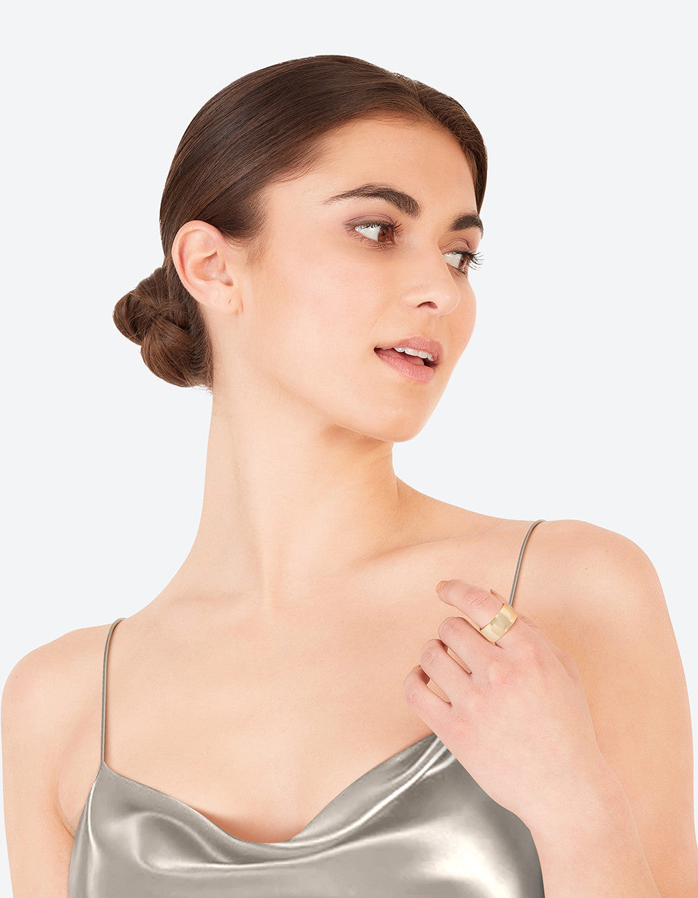 Make a statement with this bold piece. This cigar ring is gold-toned and boasts a thick, smooth shape. Pair with your favourite gold-toned jewellery for maximum impact!
