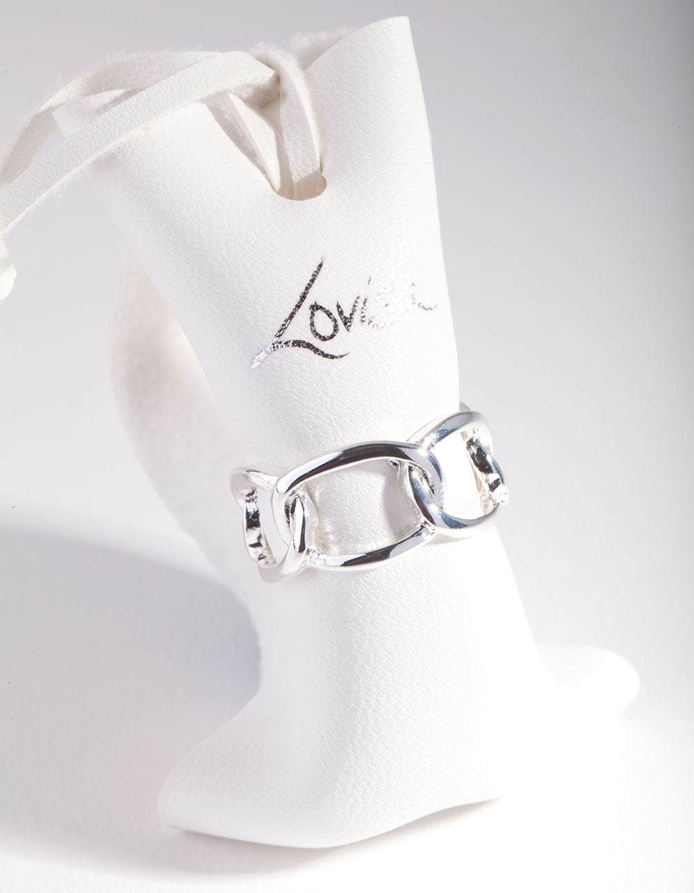 A statement silver plated wide rectangle link design takes the classic band up a notch. We love this style alone or paired with other bands for a trend-led look.