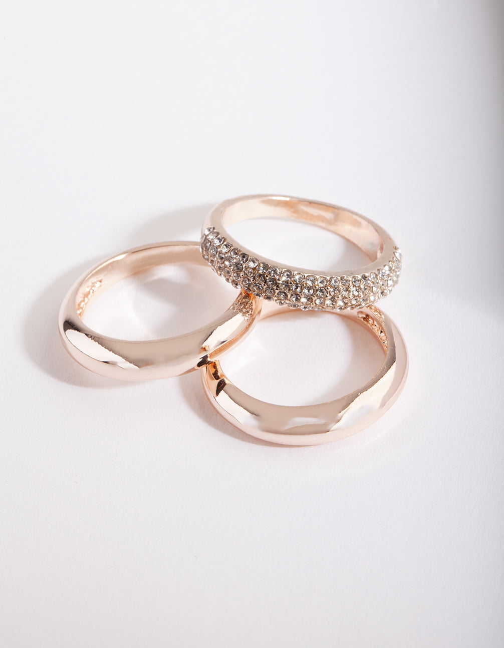Make a statement in a stunning fashion ring. Stack with other styles for extra impact or wear alone for a refined addition to your ensemble. This ring stack boasts a rose gold toned design with diamante embellishments.