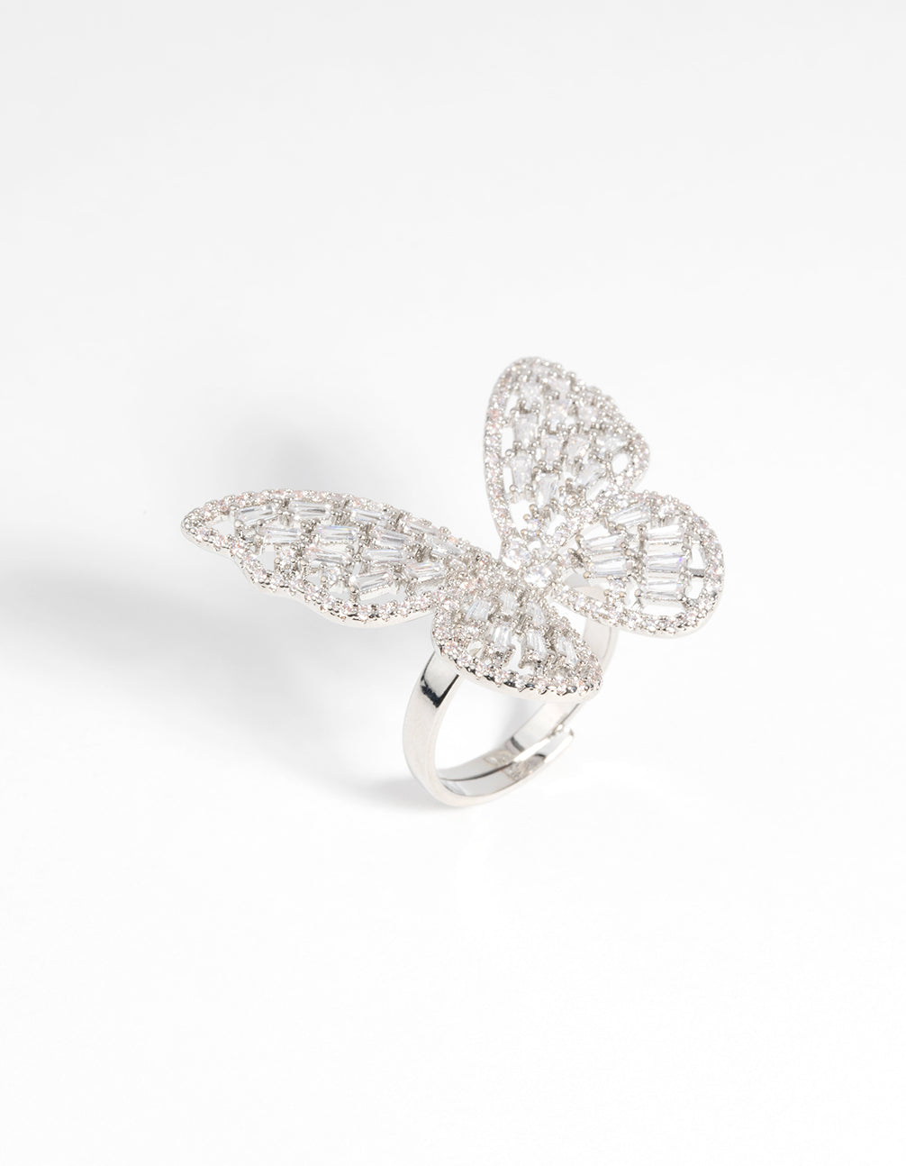 Rhodium Cubic Zirconia Butterfly Statement Ring