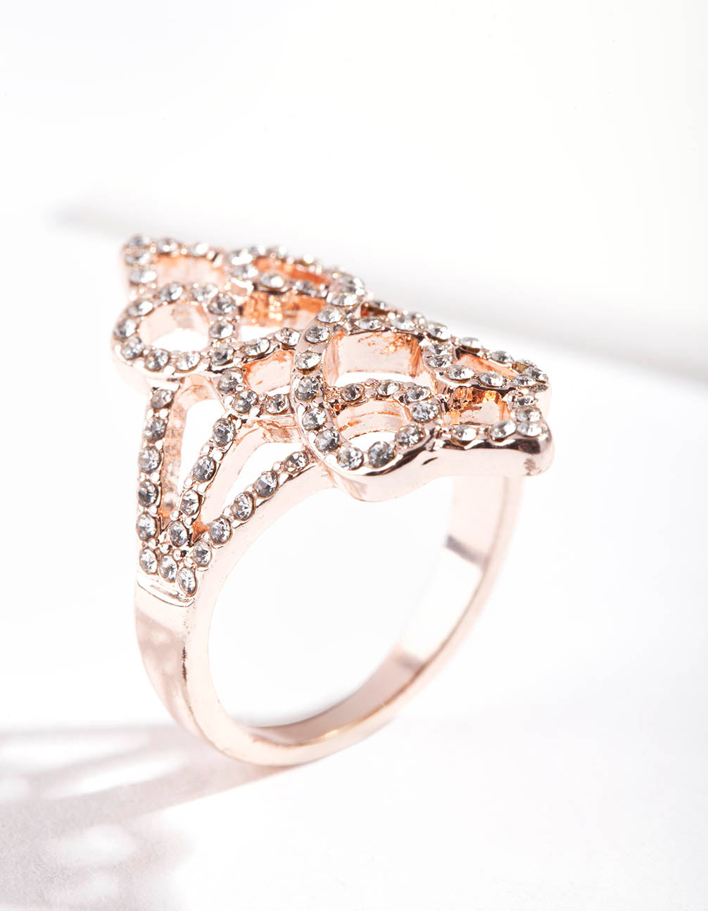 Rose Gold Geometric Diamante Ring