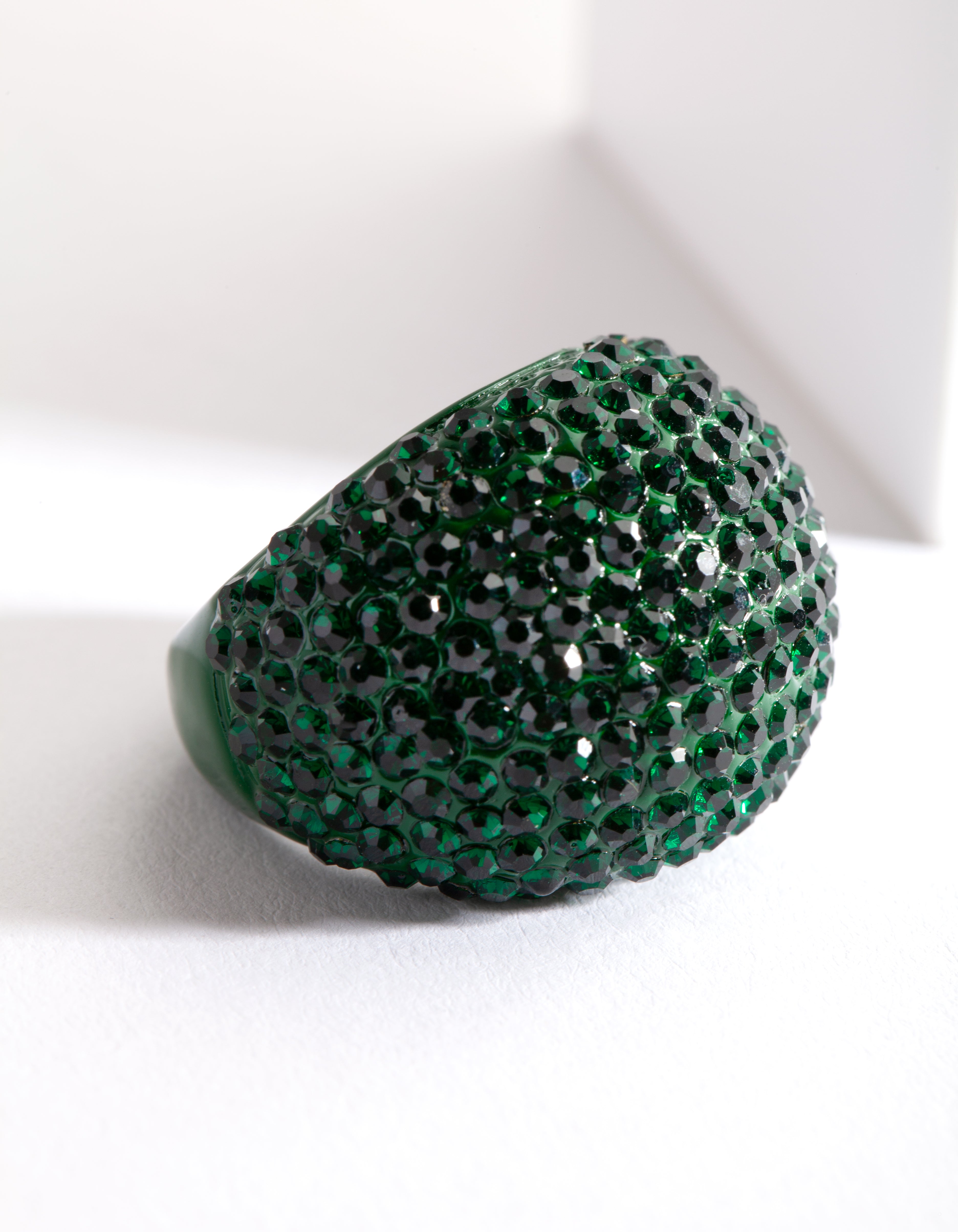 Green Coated Metal Pave Diamante Dome Ring Green Coated Metal Pave Diamante Dome Ring