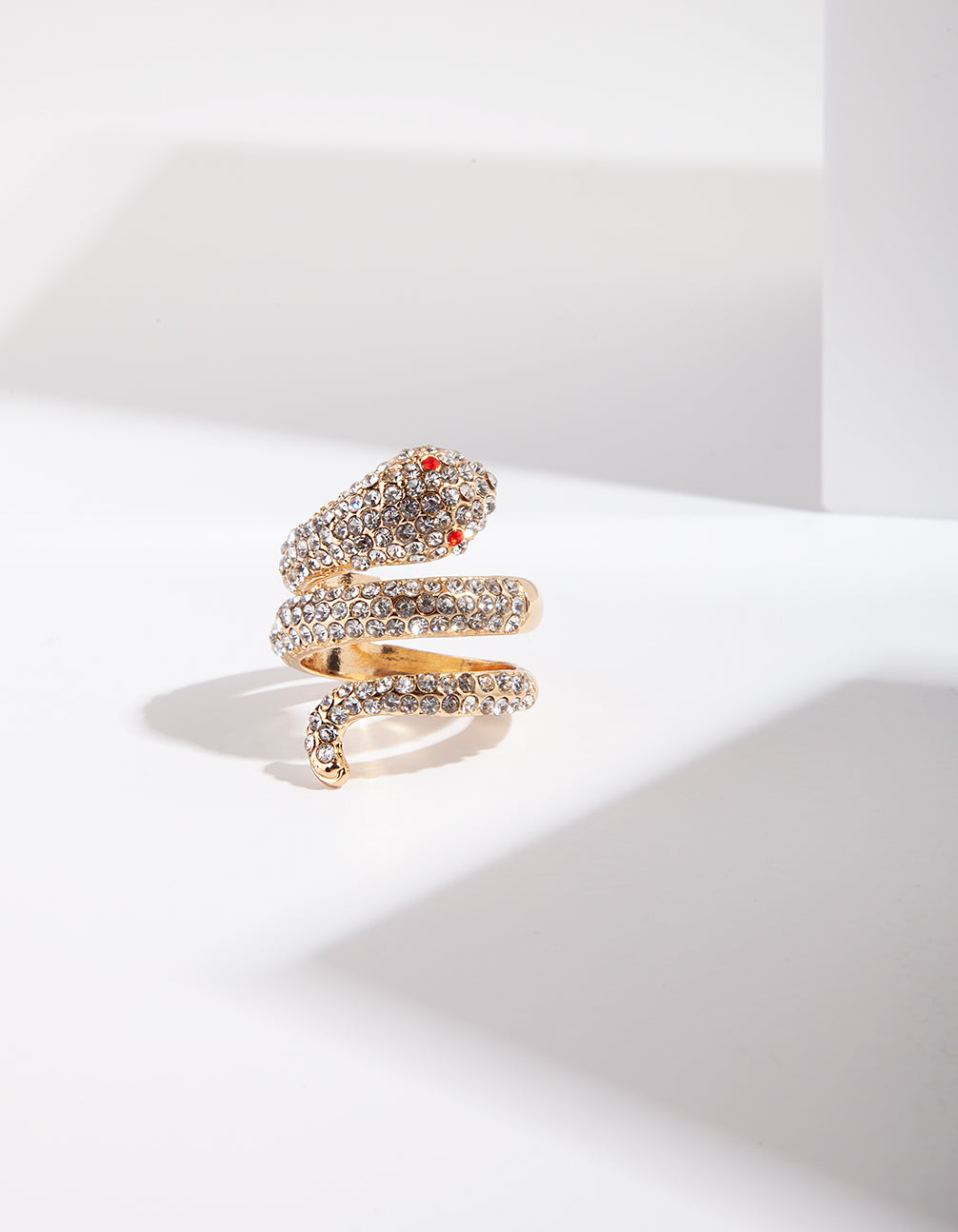 Make a statement in a stunning fashion ring. Stack with other styles for extra impact or wear alone for a refined addition to your ensemble. This ring comes with a gold-toned diamante snake design.