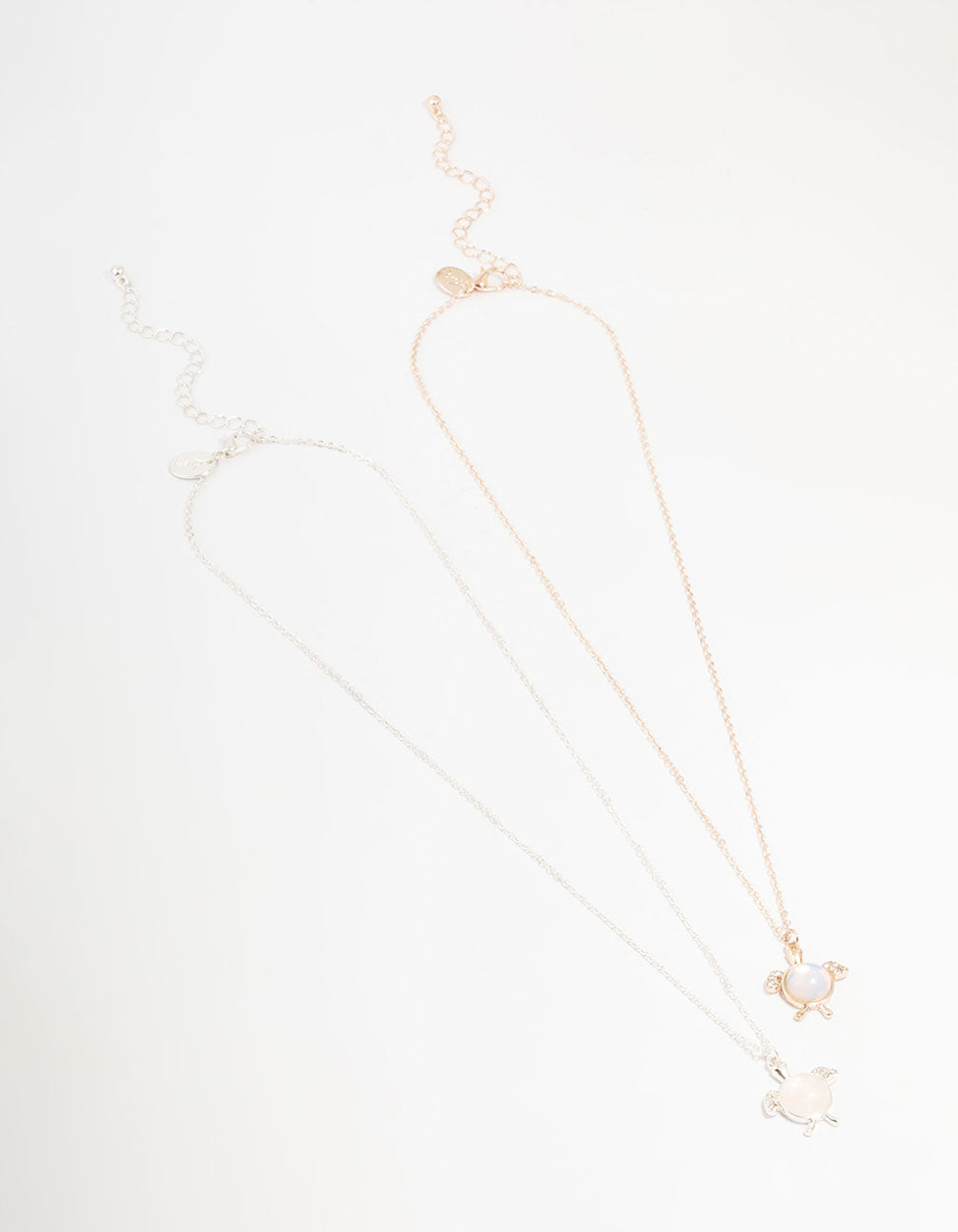 Mixed Metals Semi-Precious Turtle Necklaces 2-Pack