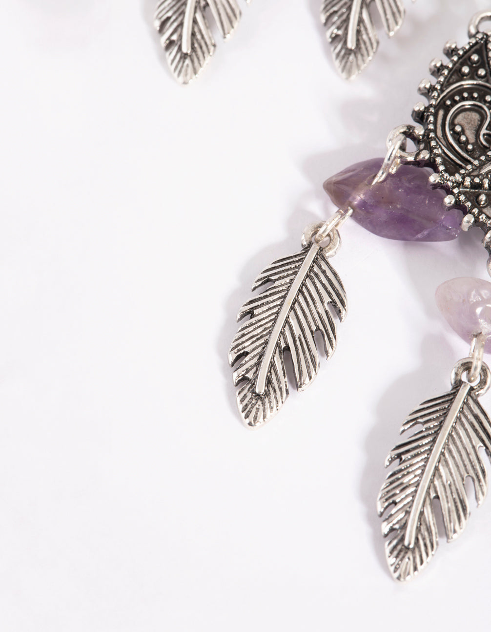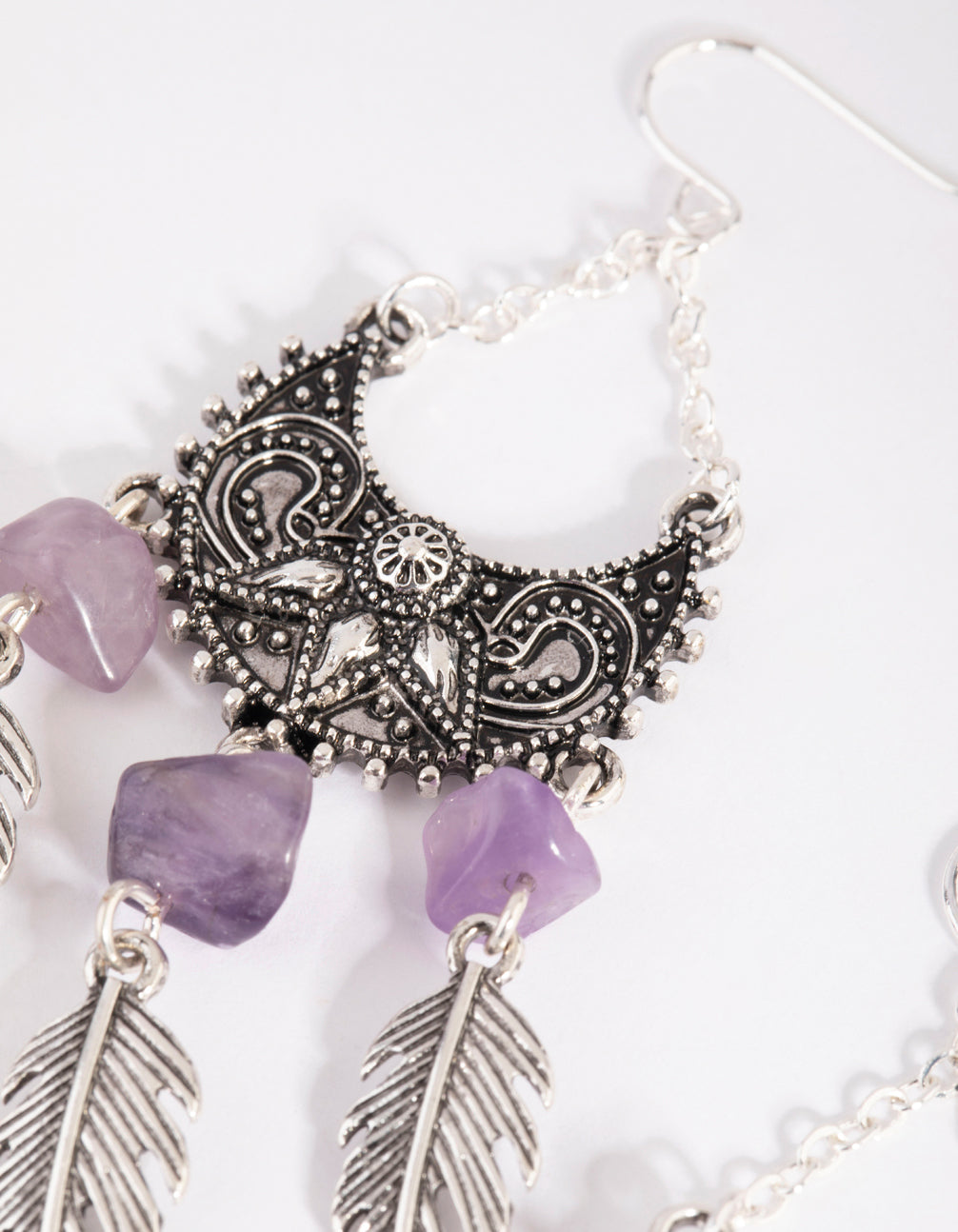 Antique Silver Fan Drop Earrings with Amethyst