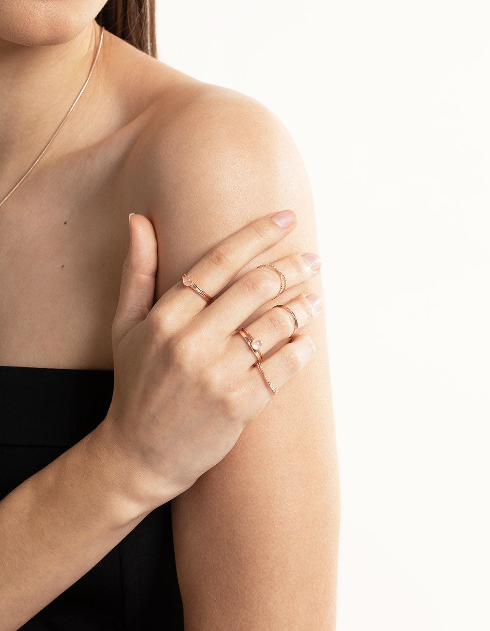 Rose Gold Quartz Ring Stack Pack