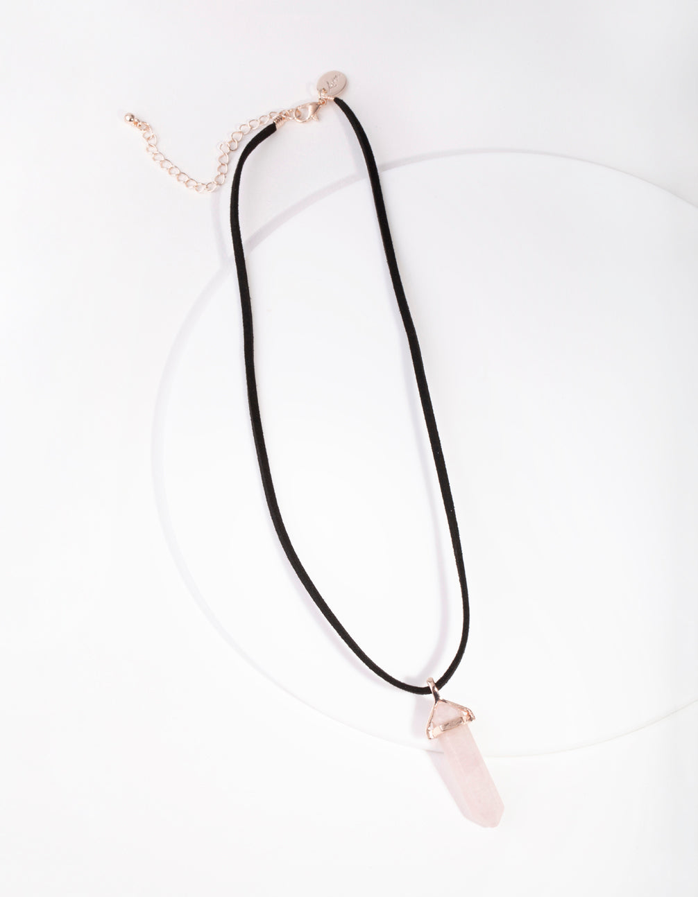 Rose Gold Suede Rope Rose Quartz Stone Necklace