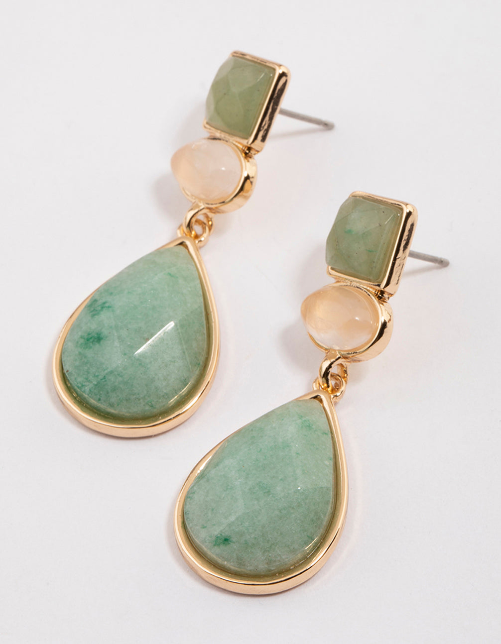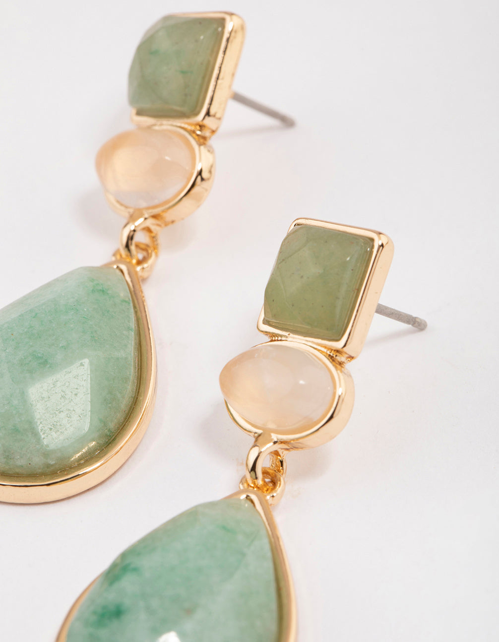 Gold Green Aventurine Mixed Shape Drop Earrings