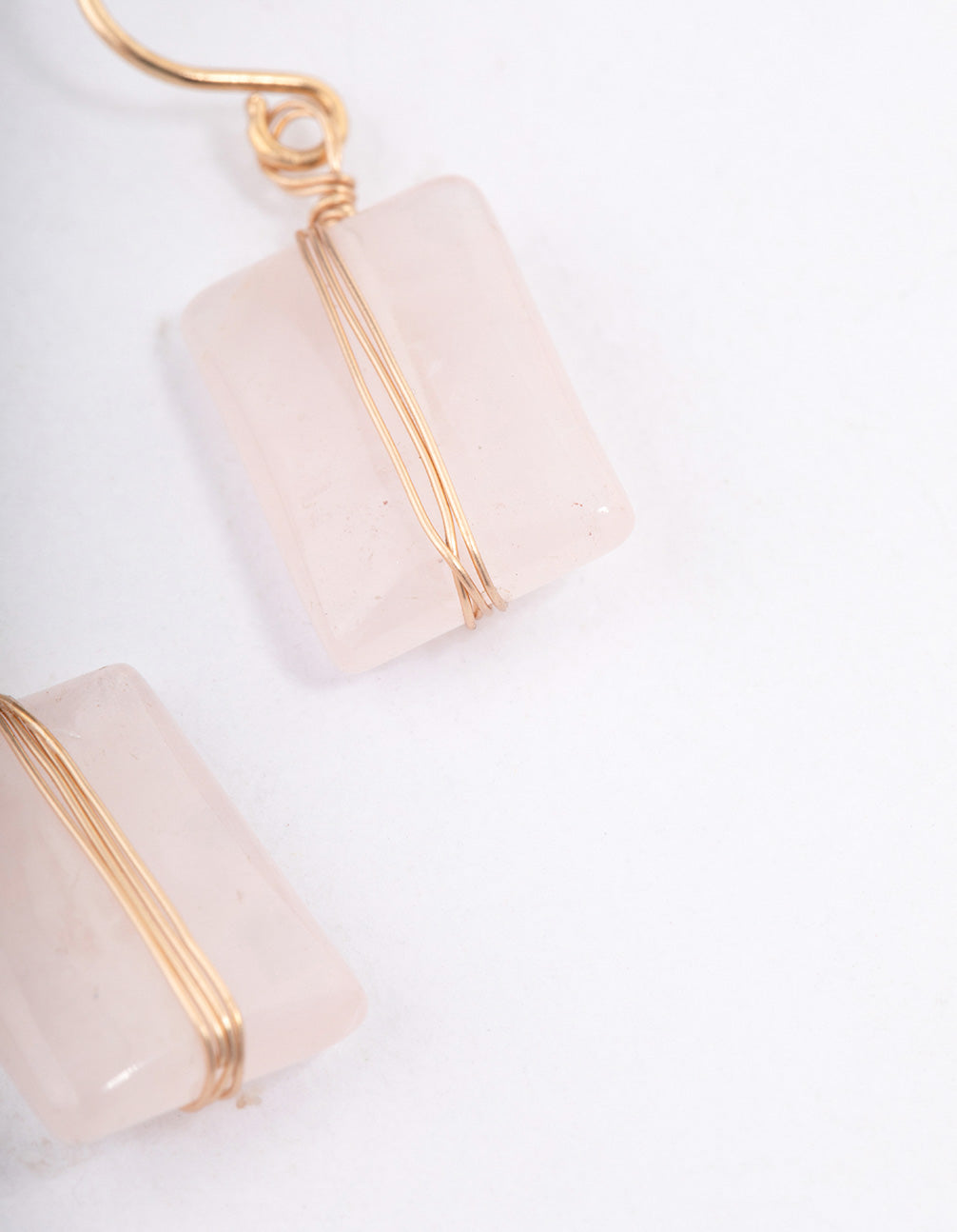 Gold Rose Quartz Square Stone Earrings