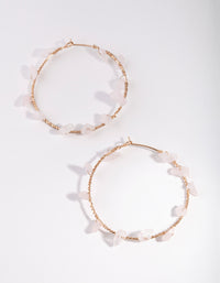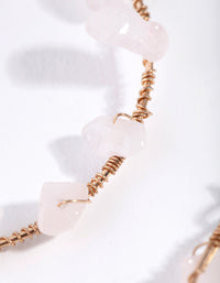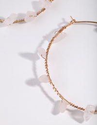 Discover the Semi-Precious Collection, featuring curated jewellery with semi-precious stone elements made to balance and restore. These gold-toned hoop earrings feature delicate pink quartz stones aranged around the hoop's edge. Pink quartz, with its dreamy pink colour, is said to bring commitment and caring.