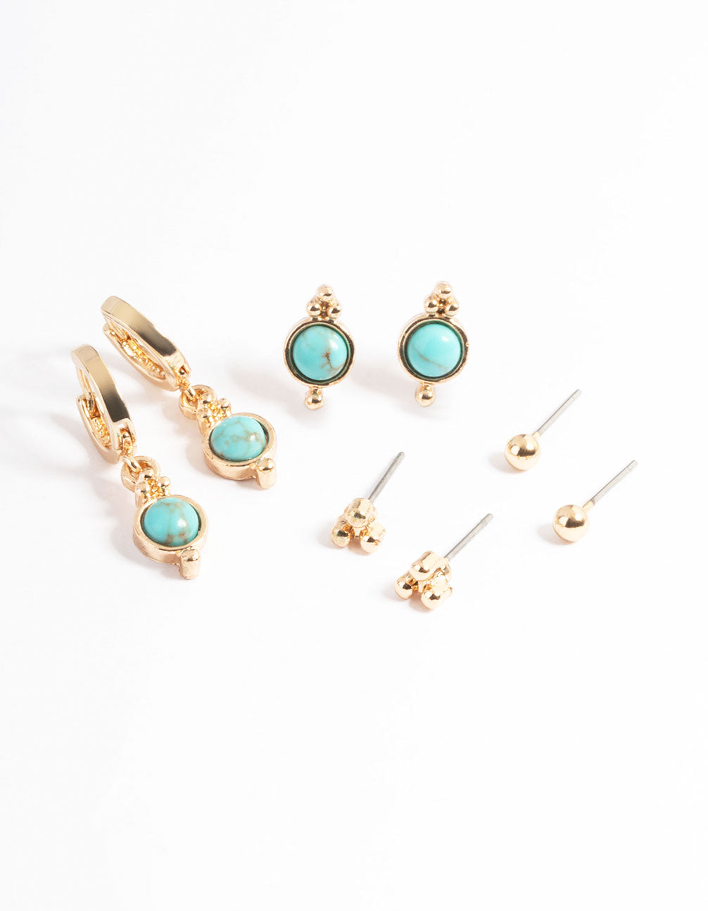 Pieces from our Semi Precious Collection are crafted with genuine, semi-precious stones for a unique touch. Style our Gold Turquoise Ball Stack Earring pack for a layered and curated look.