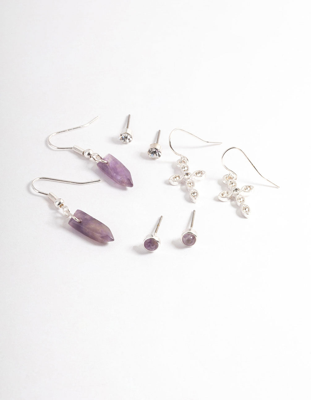 Pieces from our Semi Precious Collection are crafted with genuine, semi-precious stones for a unique touch. Style our Amethyst Cross Stack Earring Pack for a luxe, layered look.
