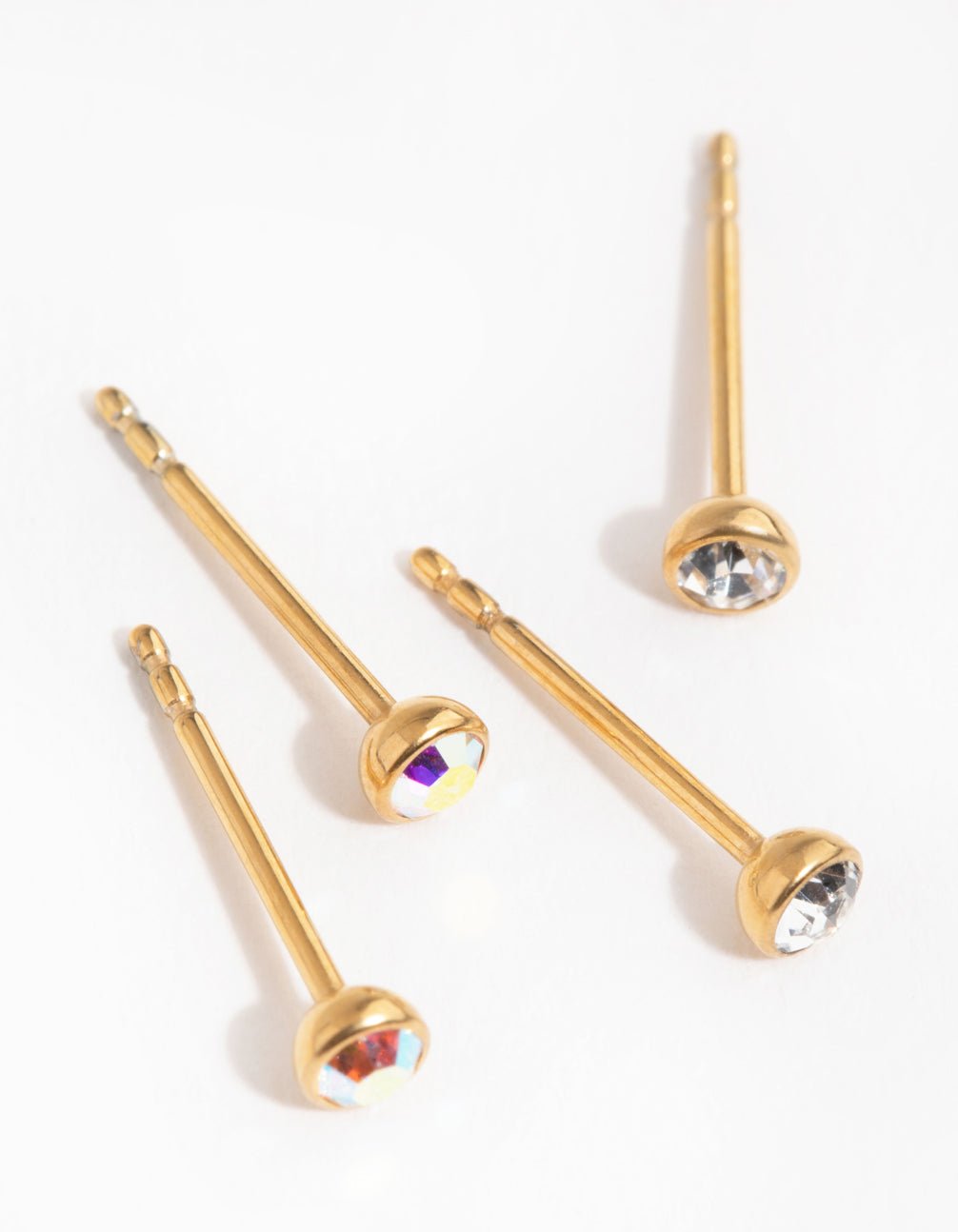 24 Carat Gold Plated Surgical Steel Diamante Bezel Pack Stud Earrings