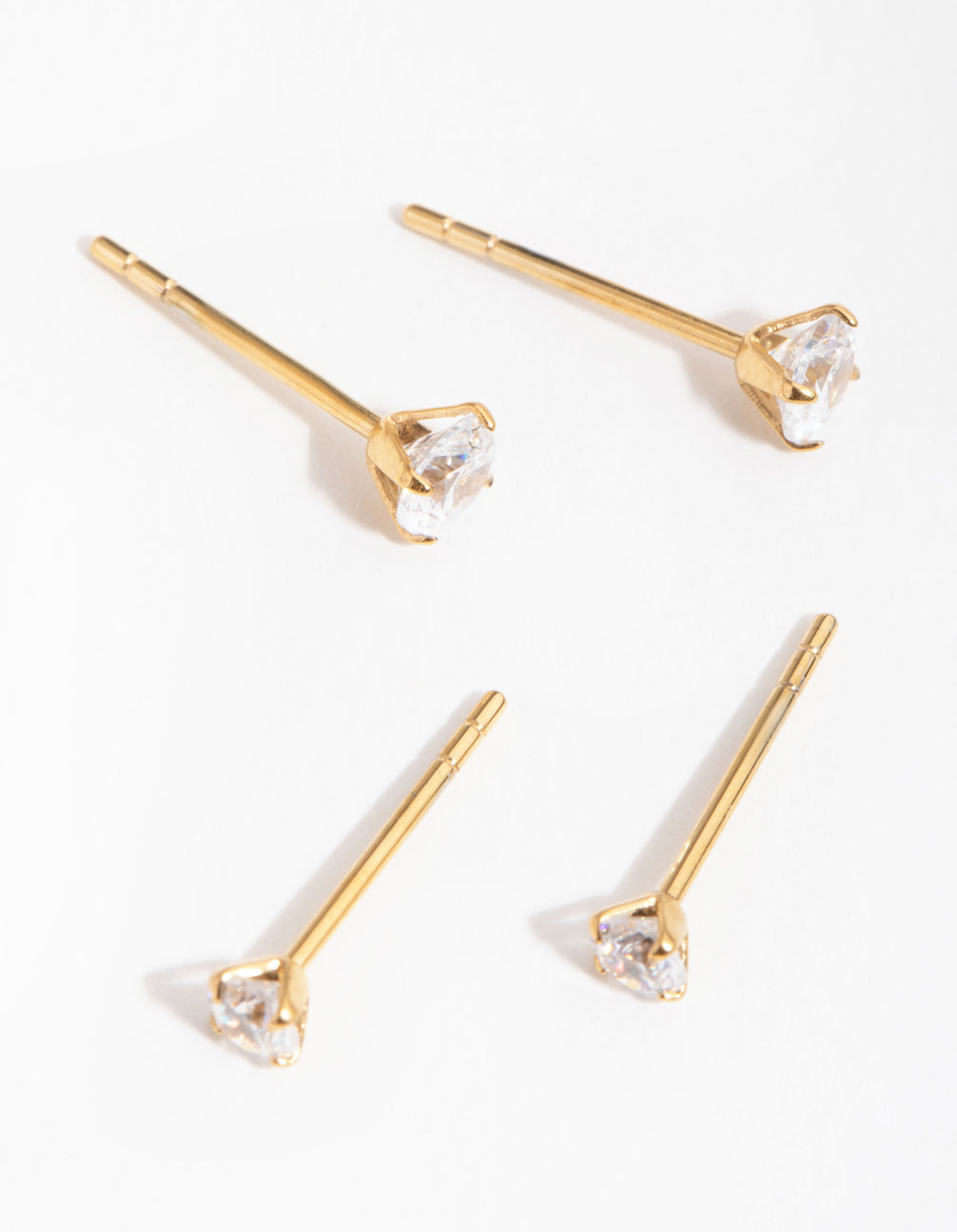 24 Carat Gold Plated Surgical Steel Round Cubic Zirconia Pack Stud Earrings