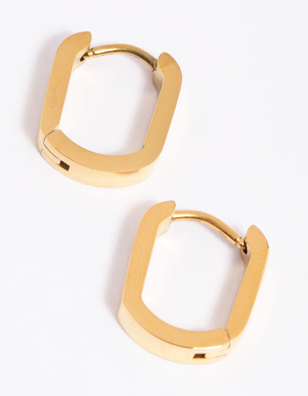 Gold Plated Surgical Steel Oval Huggie Hoop Earrings
