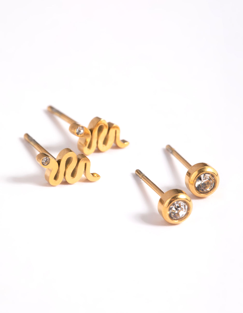 Gold Plated Surgical Steel Snake Stud Earring Pack