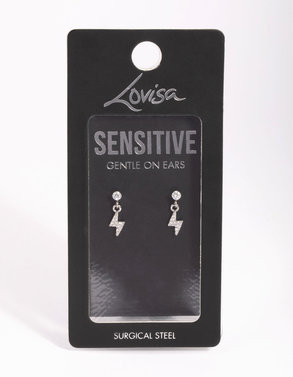 Surgical Steel Cubic Zirconia Bolt Stud Earrings