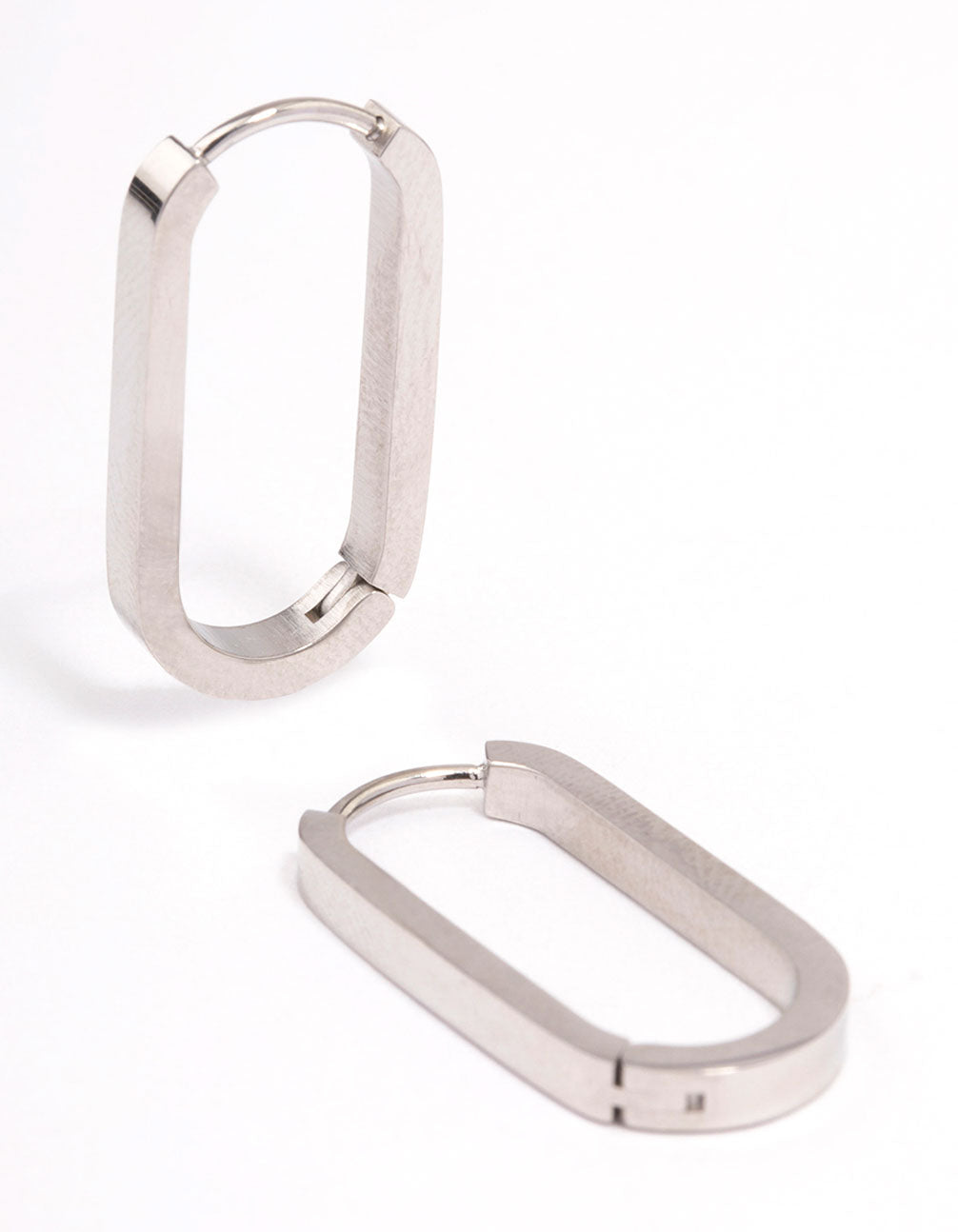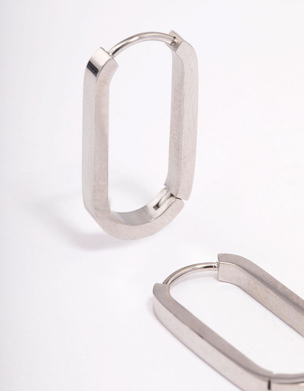 These surgical steel huggie earrings feature a modern, rectangular design for a refined finish to your stack.