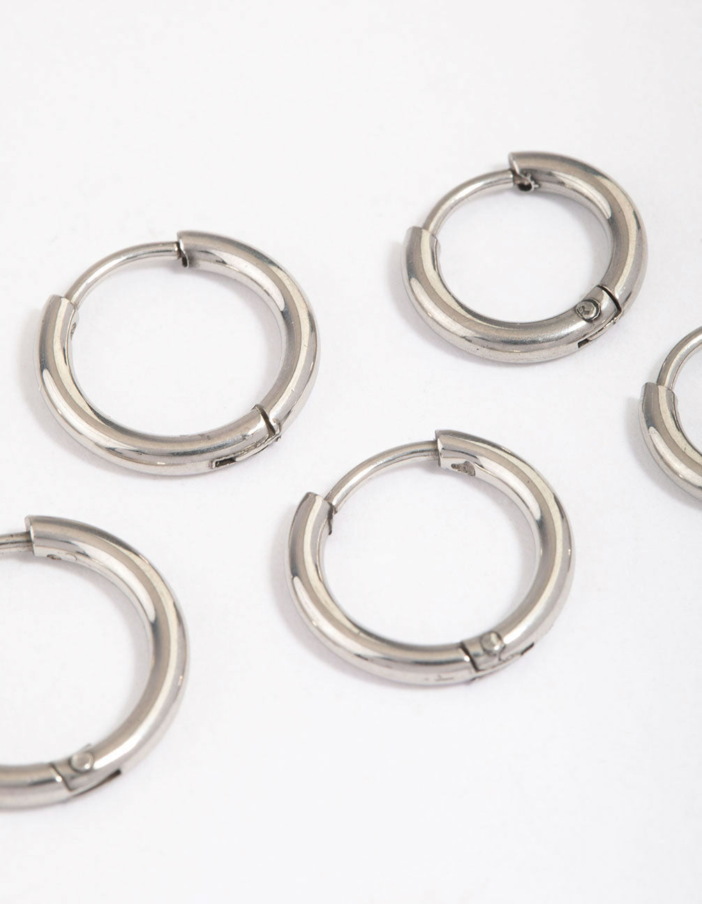 This surgical steel earring pack contains three individual classic hoops. Stack them together for a layered look, or style them solo for a more minimalist finish.