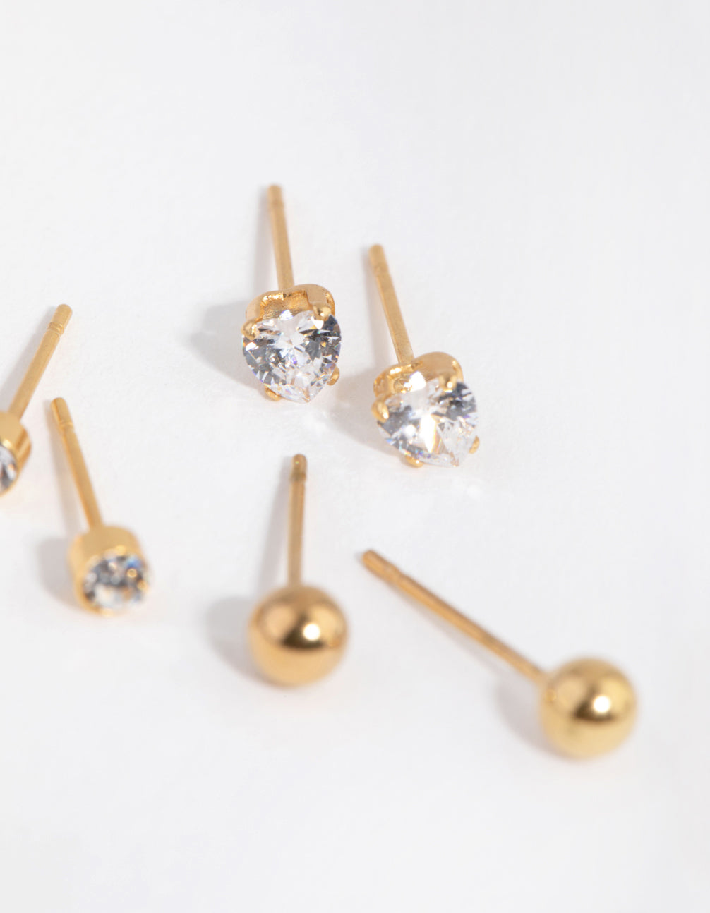 24 Carat Gold Plated Surgical Steel Love Pack Stud Earrings