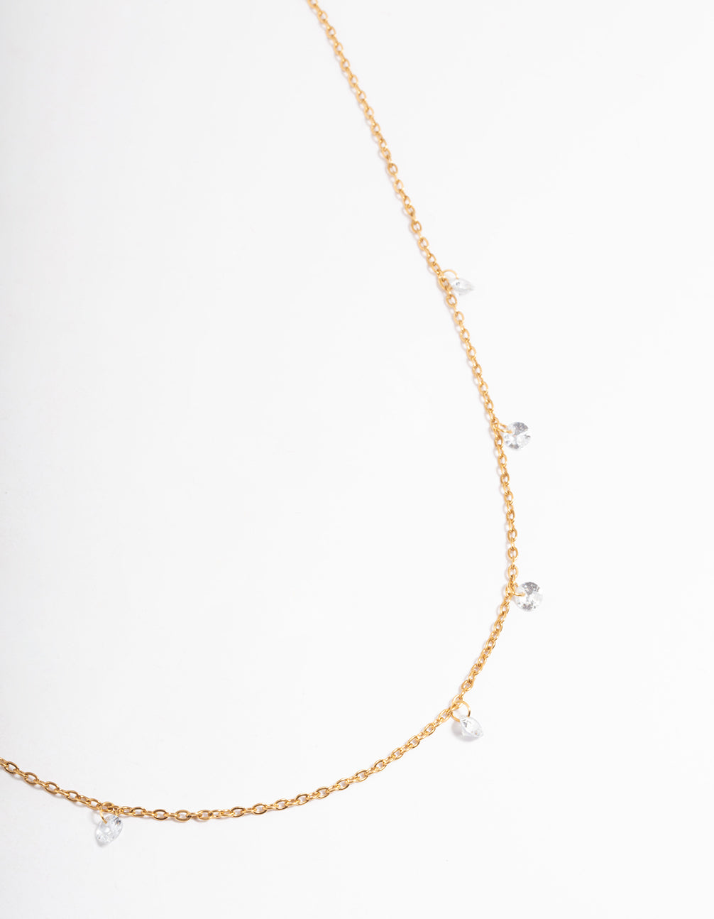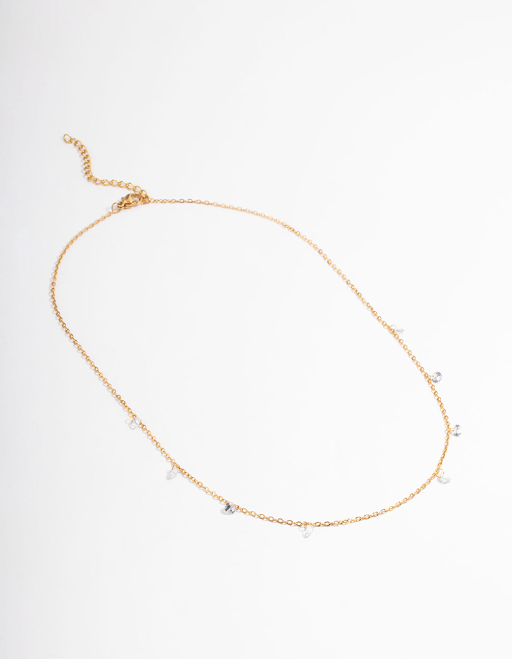 Gold Plated Stainless Steel Cubic Zirconia Drop Fine Chain Necklace
