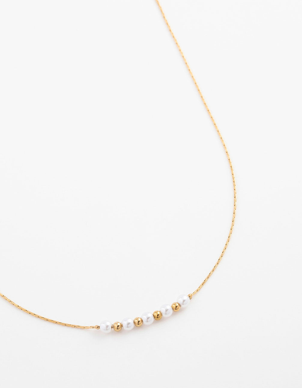 • Waterproof Gold Plated Stainless Steel Dainty Pearl & Ball Necklace - link has visual effect only