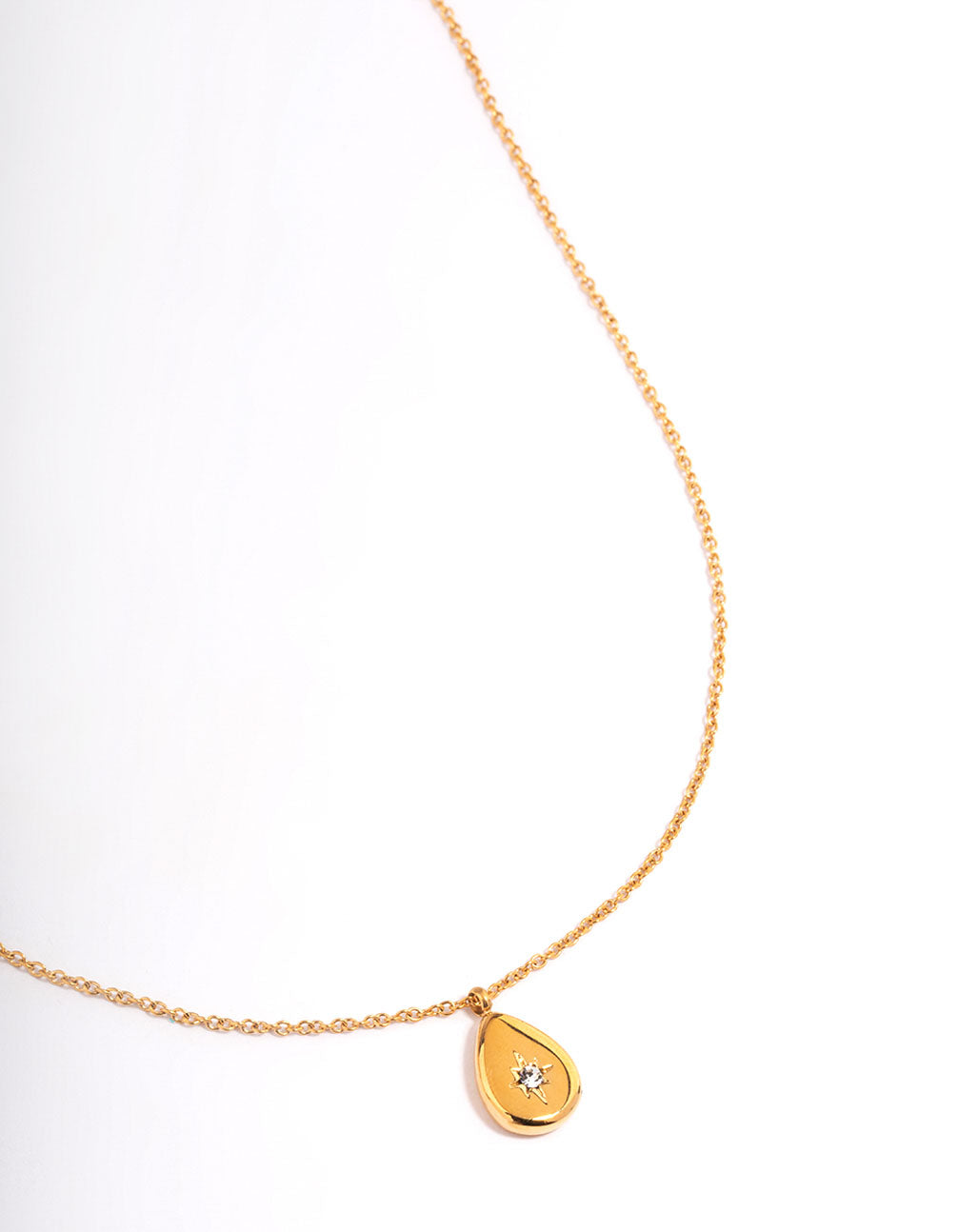 Waterproof Gold Plated Stainless Steel Teardrop Stone Pendant Necklace