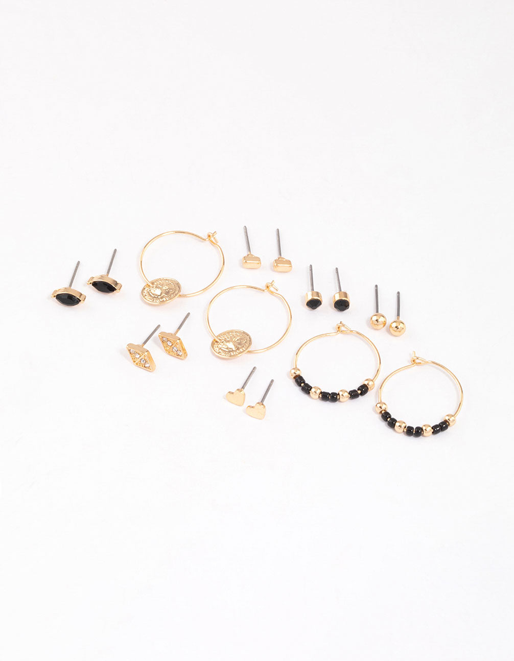 - Maximise your accessories and embellish your look with this pack of eight gold-toned, beaded and coin motif earrings.