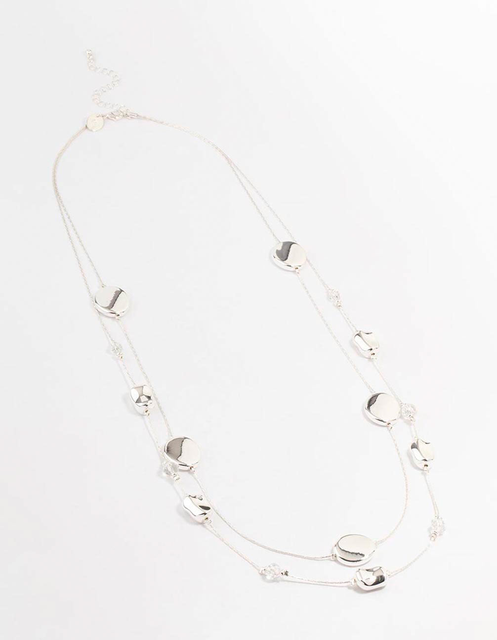Shiny Silver 2 Row Mixed Bead Layered Necklace Shiny Silver 2 Row Mixed Bead Layered Necklace Shiny Silver 2 Row Mixed Bead Layered Necklace