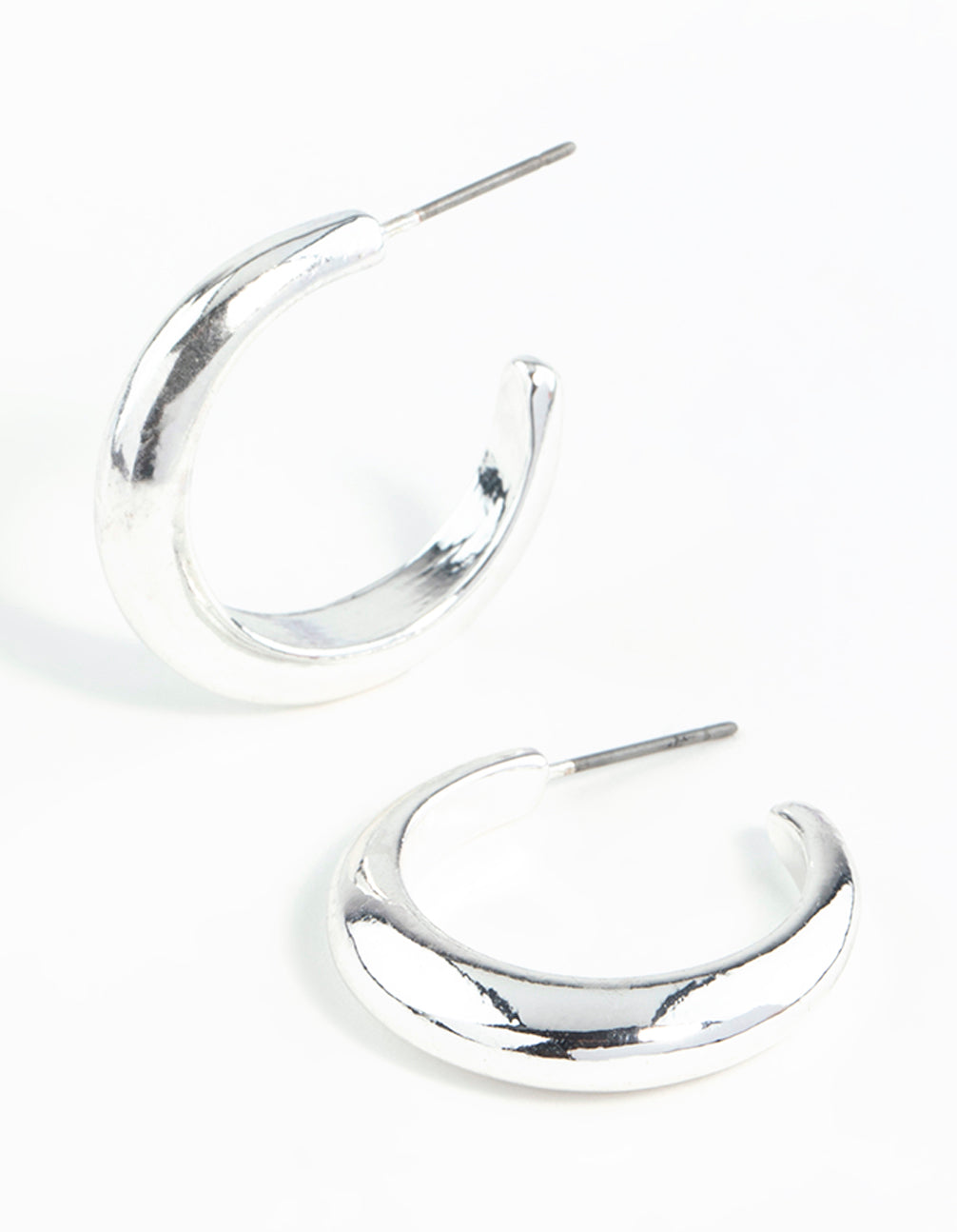 Silver-toned earrings are classic and versatile. These huggie hoops are designed to 'hug' your earlobe. Pair them with other silver-toned studs and earrings for maximum impact!