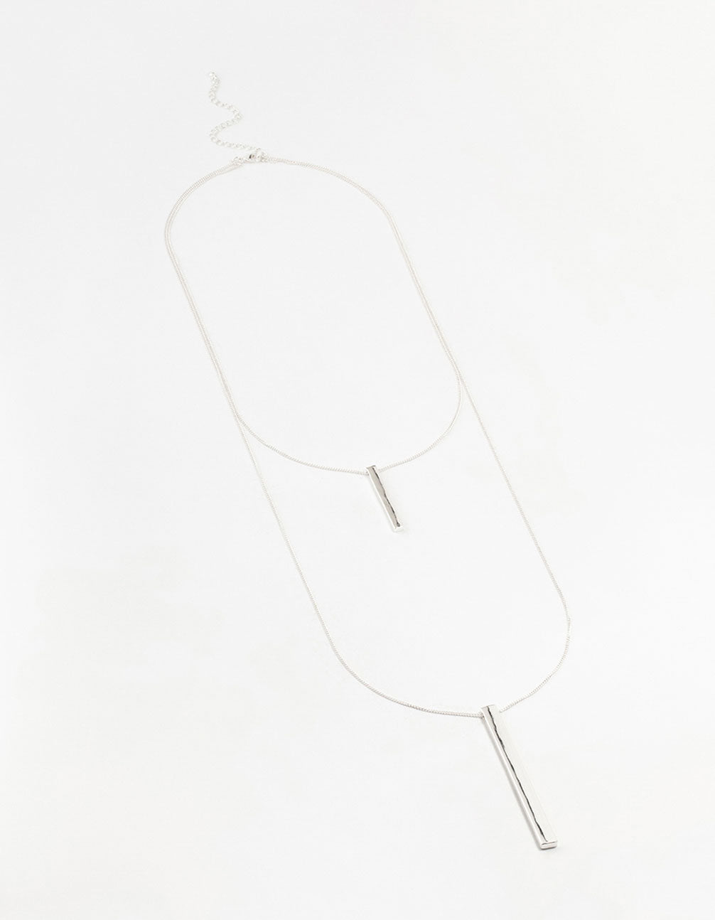 Cultivate sleek style with this silver 2-row long bar necklace. Crafted from a luxurious blend, it adds effortless sophistication to any outfit, from casual tees to formal attire. Versatile and stylish, it's a must-have for your collection.