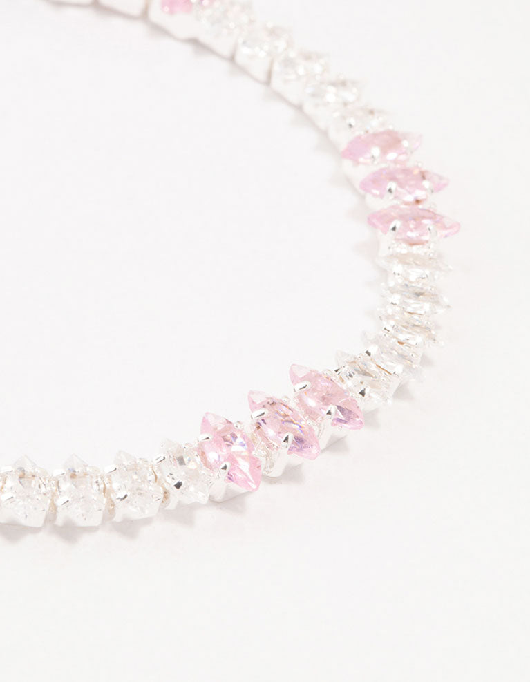 Boost your wrist game with this dazzling silver bracelet! The marquise-cut cubic zirconia in clear and pink create a mesmerizing sparkle. Perfect on its own or stacked with other bracelets, it's your go-to for a chic, sophisticated look.