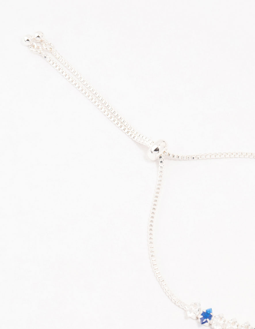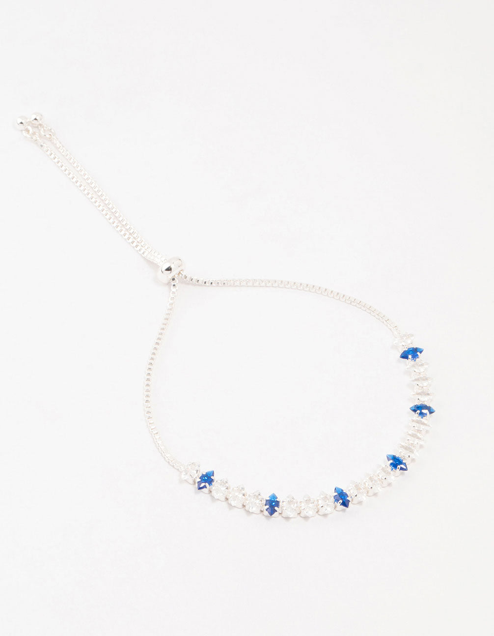 Silver Alternating Cluster Marquise Blue Cubic Zirconia Toggle Bracelet