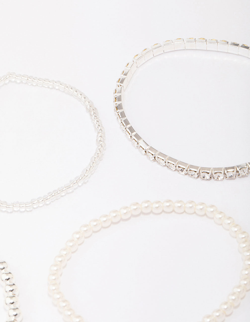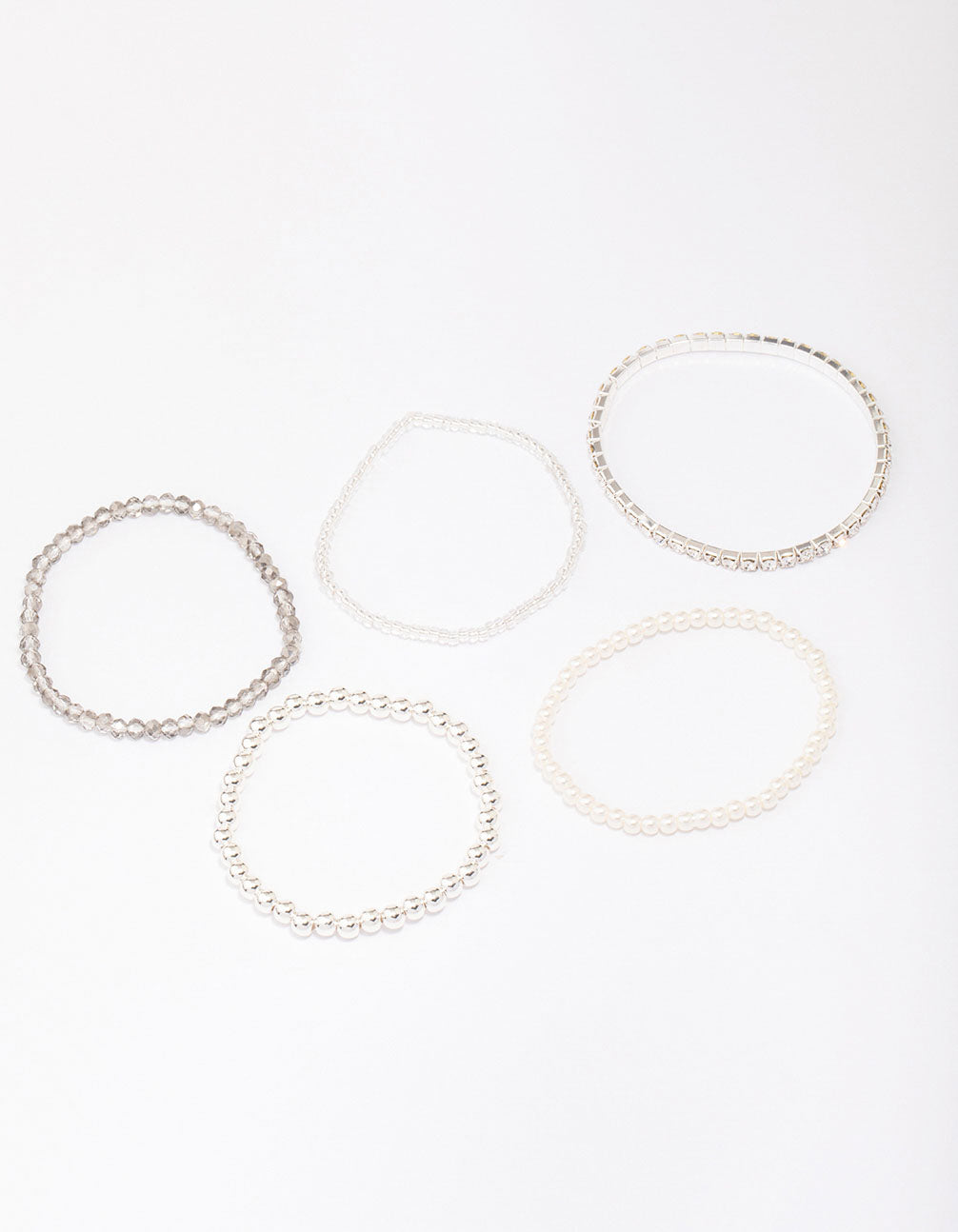 For an on-trend finish to your stack, style this silver-toned bracelet pack. This pack includes five individual bracelets, each designed with silver and pearl beads for a decorative touch.
