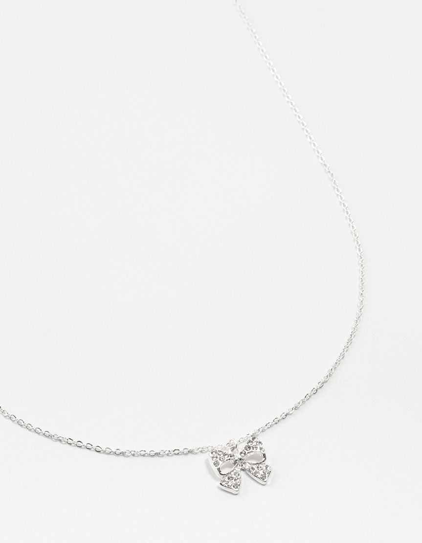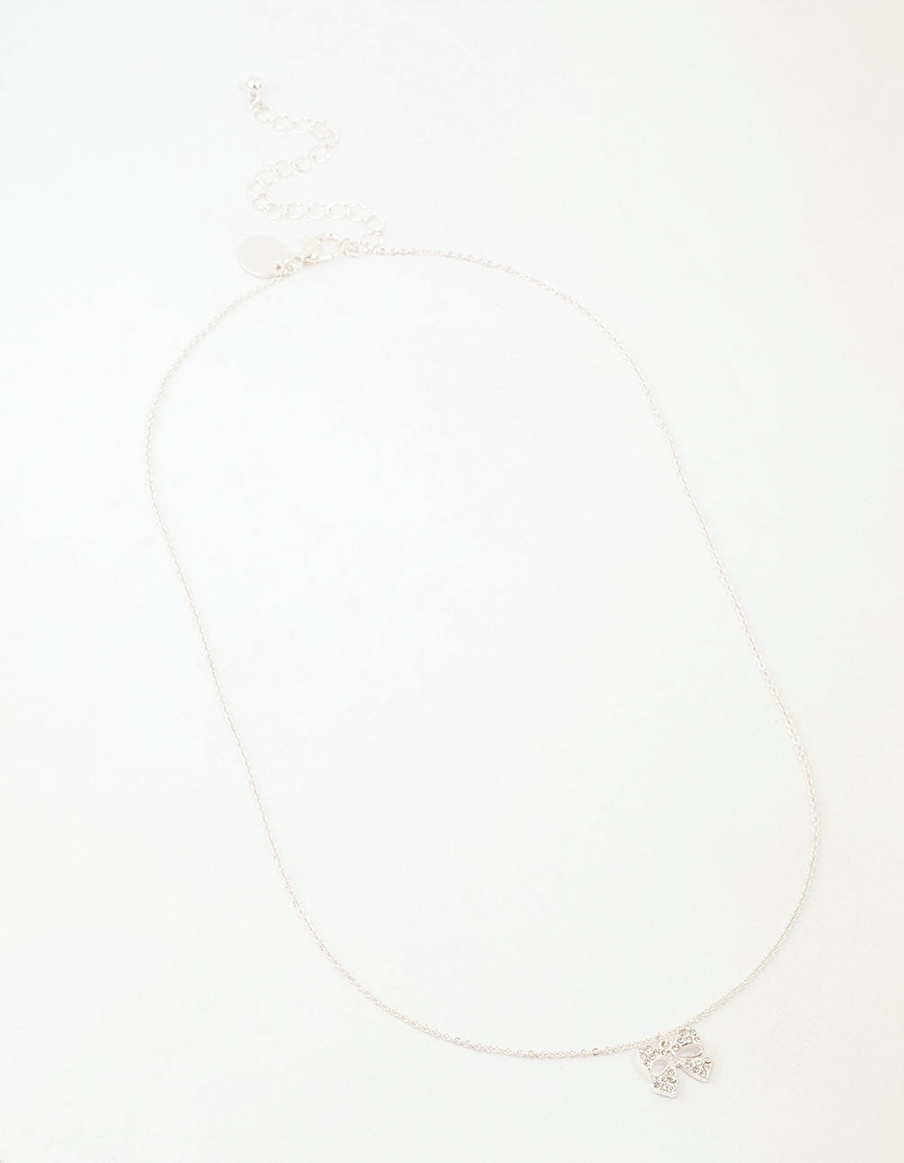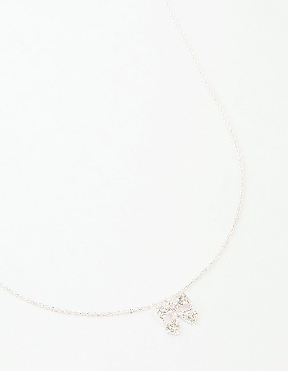 Add flirty charm with this stunning silver-toned necklace. The bow pendant sparkles with diamante crystals, adding effortless glam to any outfit. Perfect for layering or making a statement on its own.